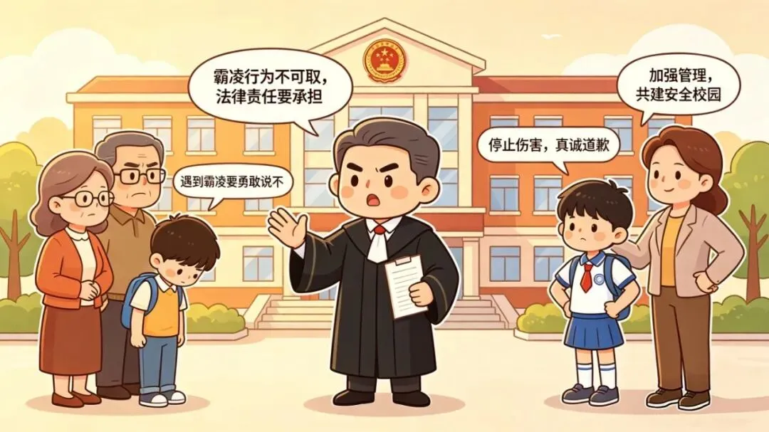 ①明确认知:校园霸凌绝非“孩子间的玩笑”,无论是言语辱骂、孤立排挤、造谣污蔑,还是肢体殴打、损毁财物,均属于违法行为,严重者可能构成犯罪;②监护人需切实履行监护职责,发现孩子实施霸凌行为后,立即予以批评教育,责令孩子向被霸凌者主动道歉、赔偿损失,同时加强对孩子的法治教育,引导其树立正确的是非观,杜绝霸凌行为再次发生;③切勿抱有“孩子还小、无需担责”的侥幸心理,若孩子的霸凌行为情节严重,可能被送入专门学校接受矫治教育,年满相应年龄的,还需承担刑事责任,其行为不仅会伤害他人,也会影响自身的未来发展。