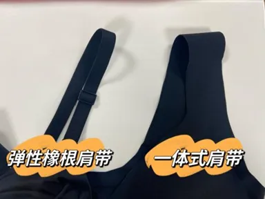 特别一提的是,除了大家熟悉的弹性橡根肩带外,现在不少内衣会采用与内衣主体面料相同的一体式肩带。在弹性回复表现上,二者并没有太大差别,但在穿着功能上,这两种款式各有优势:弹性橡根肩带穿着时可以根据身材情况调节肩带长短;一体式肩带通常更为轻薄,宽度也更大,穿着无痕舒适。