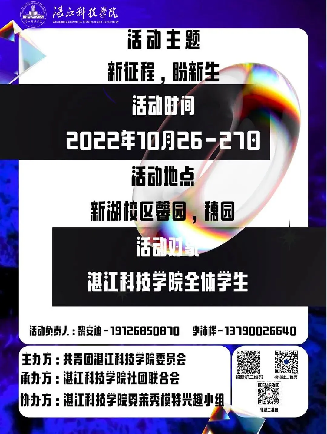 我们霓莱秀模特兴趣小组,是人文艺术类社团。社团名字霓莱秀取“你来秀”的谐音。