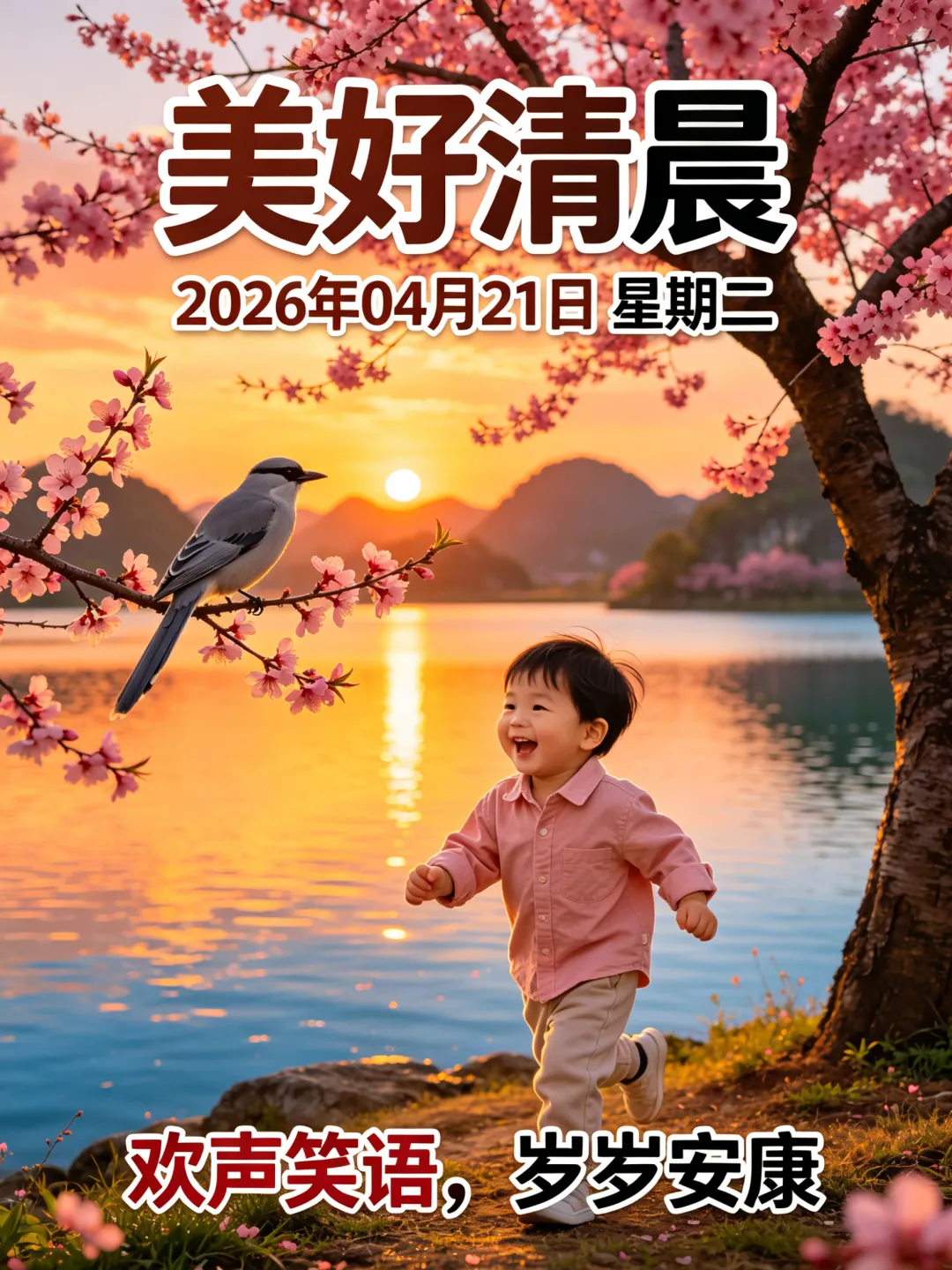 4月21日-早上好图片祝福!愿你笑口常开,祝你幸福吉祥