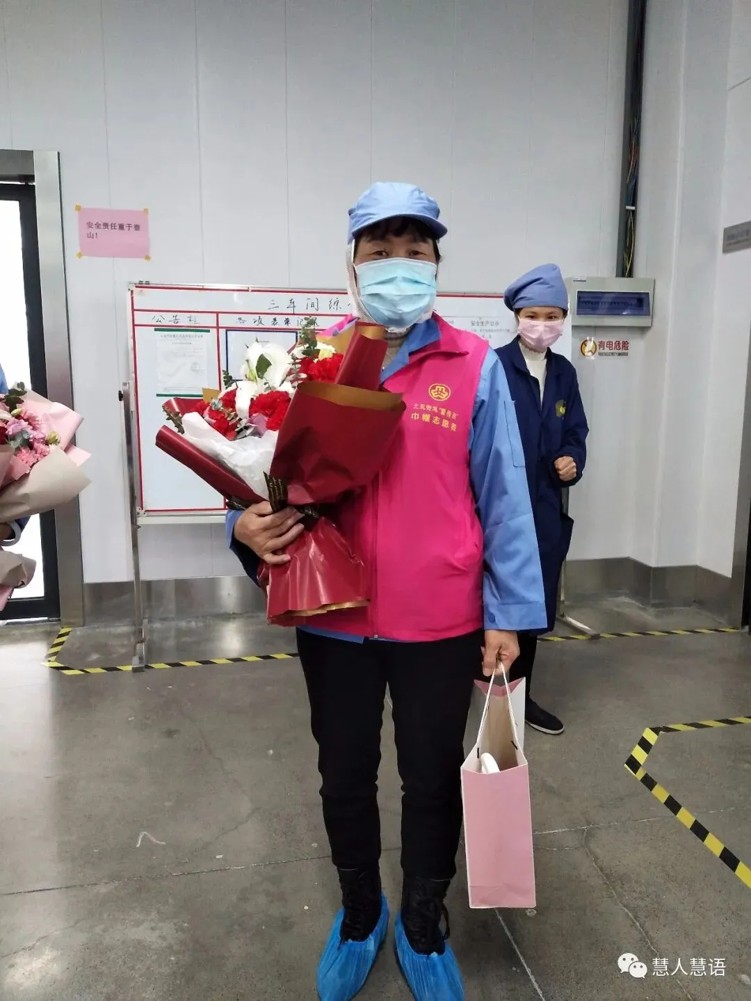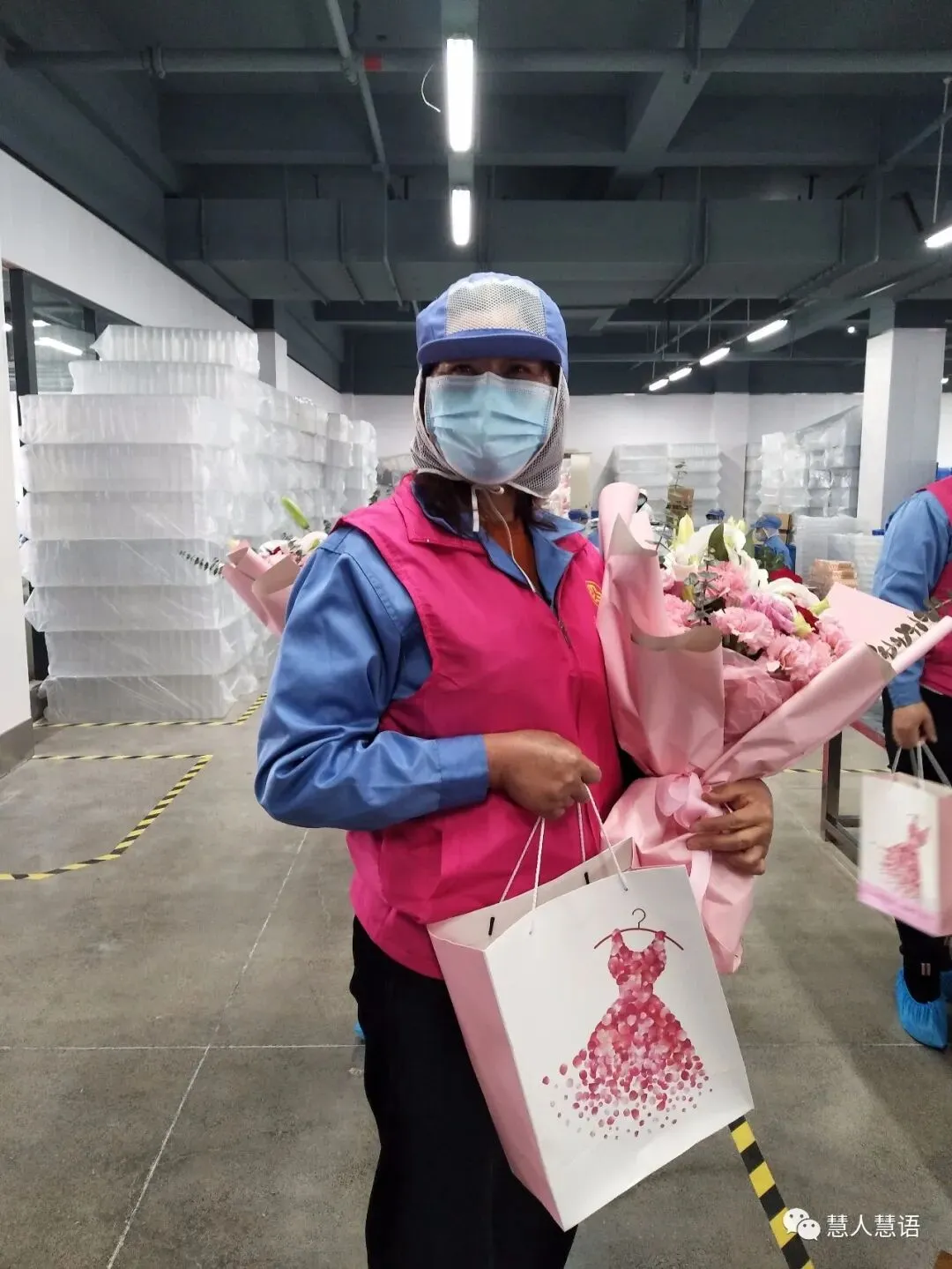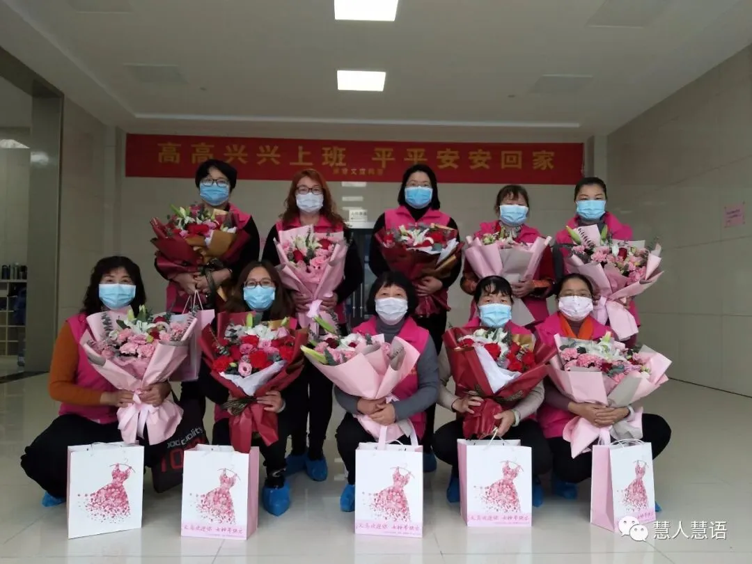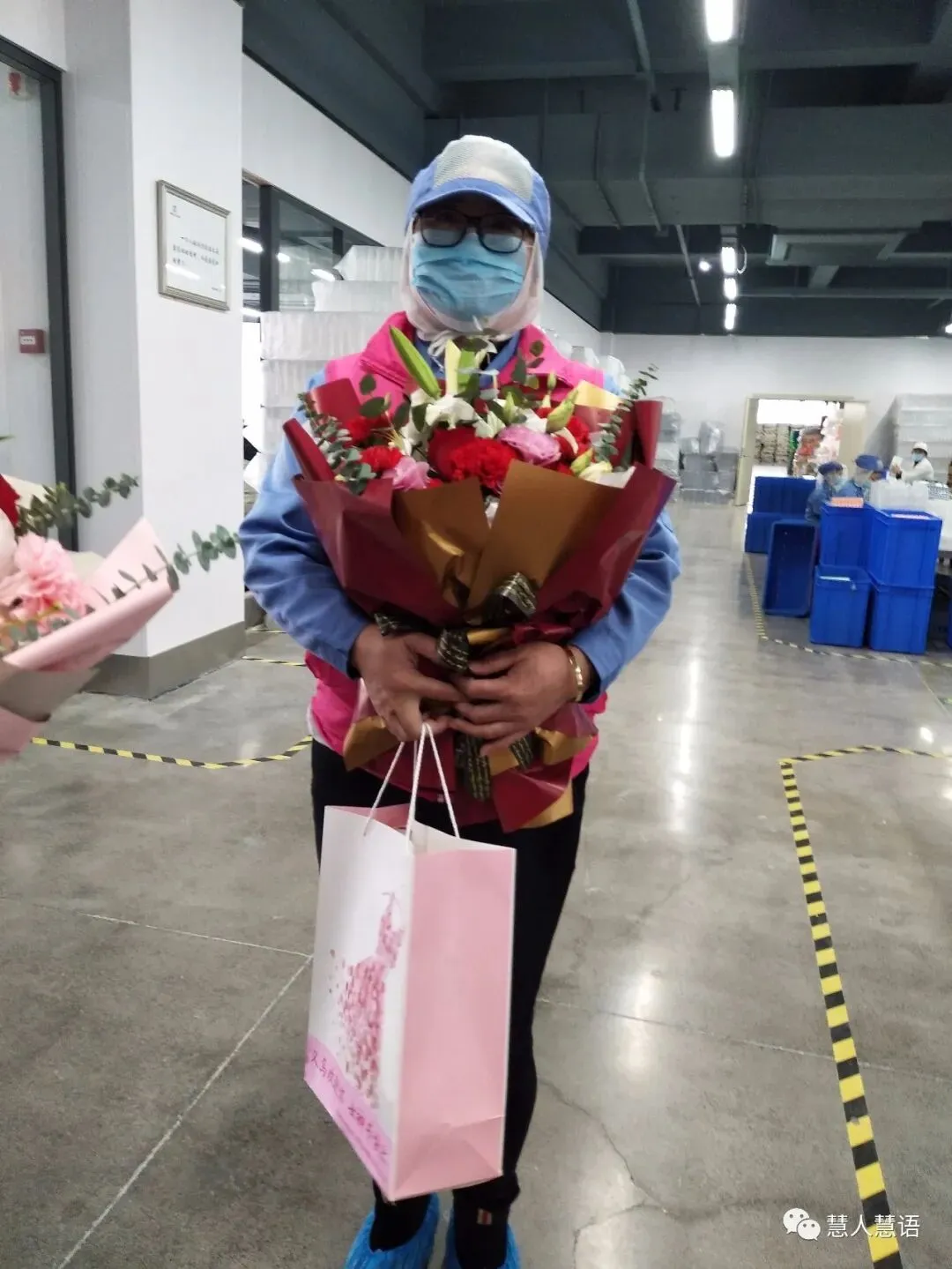 看到鲜花和礼物,我们才意识到原来今天是一年一度的女神节呀!收到礼物的巾帼志愿者们各个眉开眼笑,仿佛这场疫情从未来过。因为着装关系,大家可能无法从照片中直接看清楚,但是当时的气氛在场的每个人都可以感受到。这注定是一个不一样的女神节!