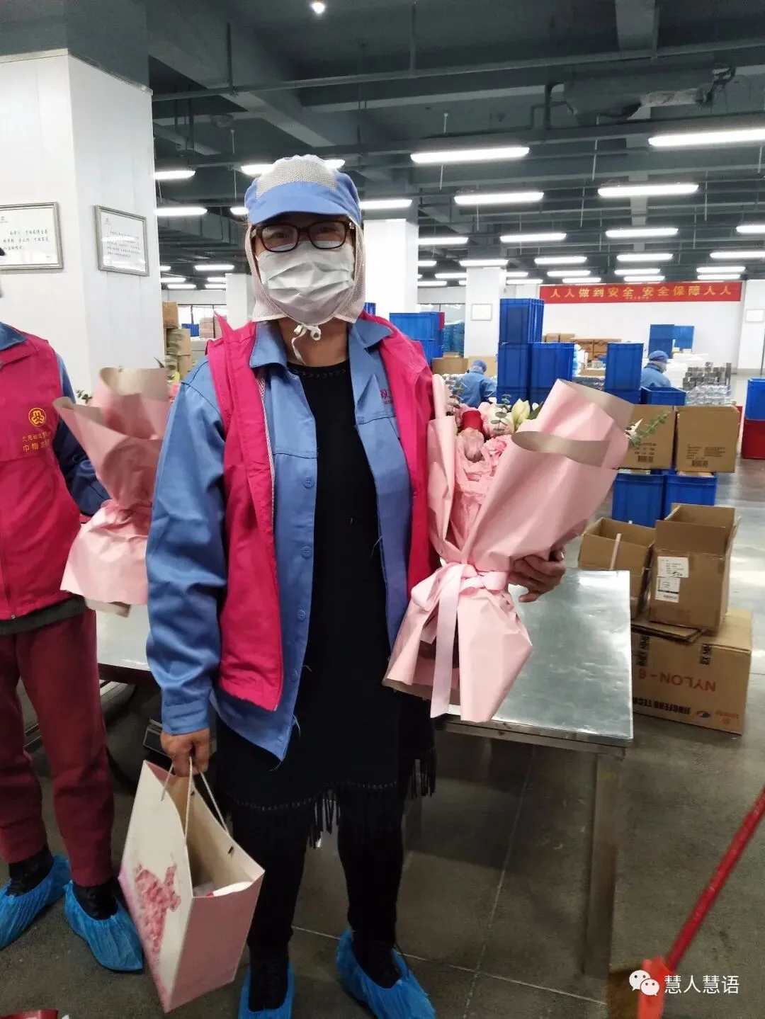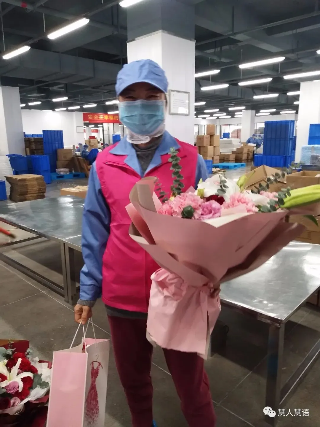在我们认真工作期间,市领导突然来访,并亲切慰问了我们这些志愿者,给我们送上了鲜花和礼物。我们好意外,也很激动,一时之间不知道说什么好。有位女领导关切地问:你们一天能做多少个啊?志愿者回答“不知道,没数过!”的确,我们只知道埋头苦干,还没来得及计算呢。