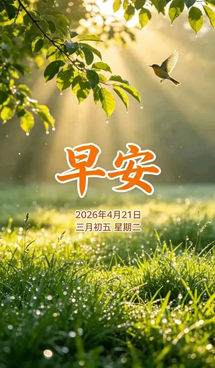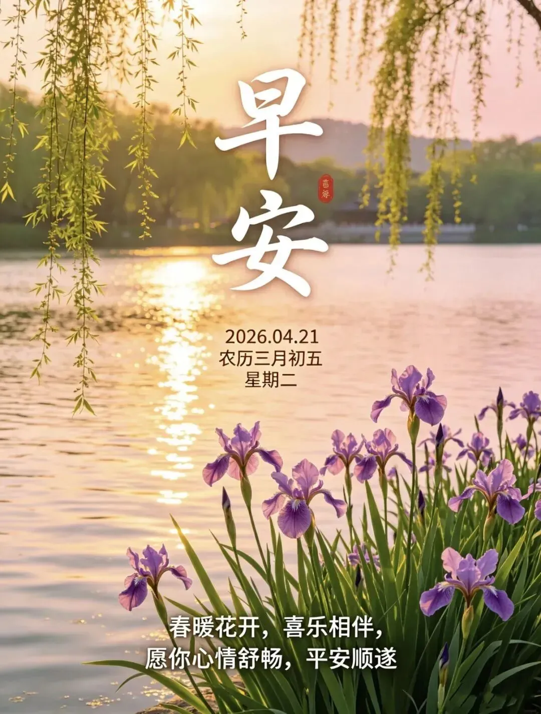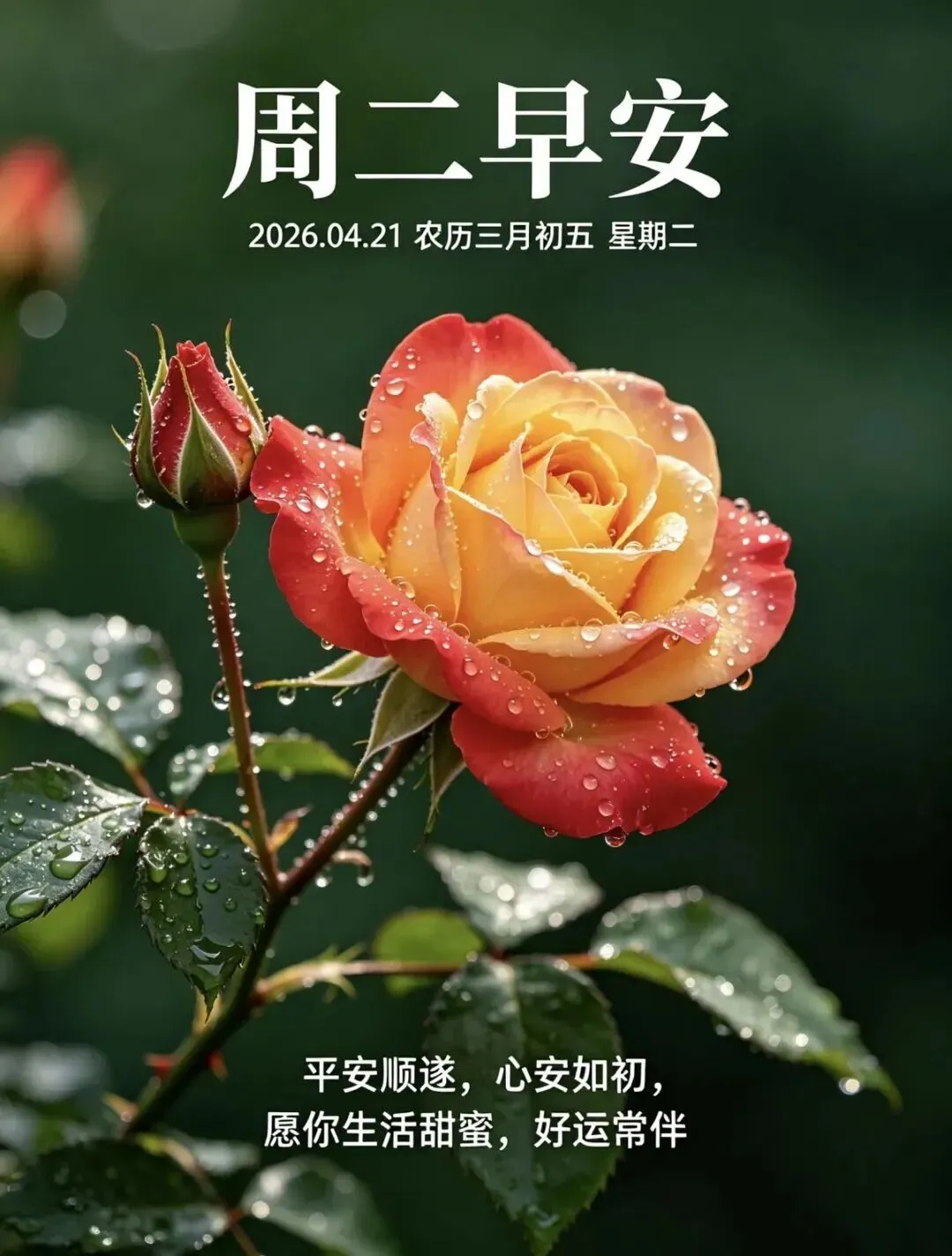 4月21日|周二早安祝福图片大全最新,美好的一天从问候开始:愿心情一路花香,岁月安暖吉祥!