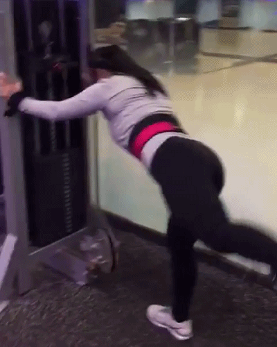 单脚直立抗阻力后抬腿练翘臀