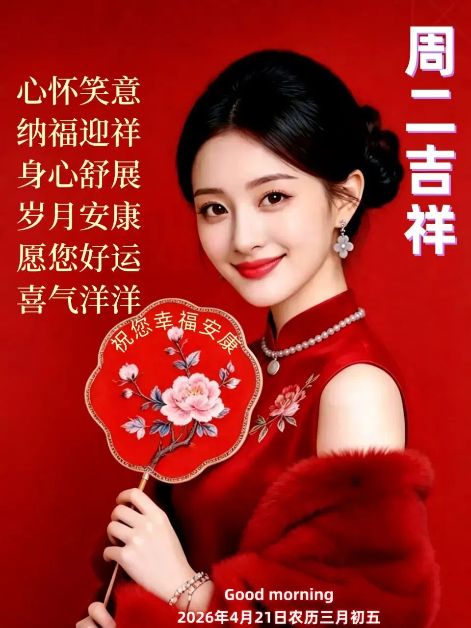 当前位置:首页>美女资讯>2026年4月21日周二早安图片,送一份祝福,平平安安,送一份心意,美美满满,送一份真诚,一路相伴!