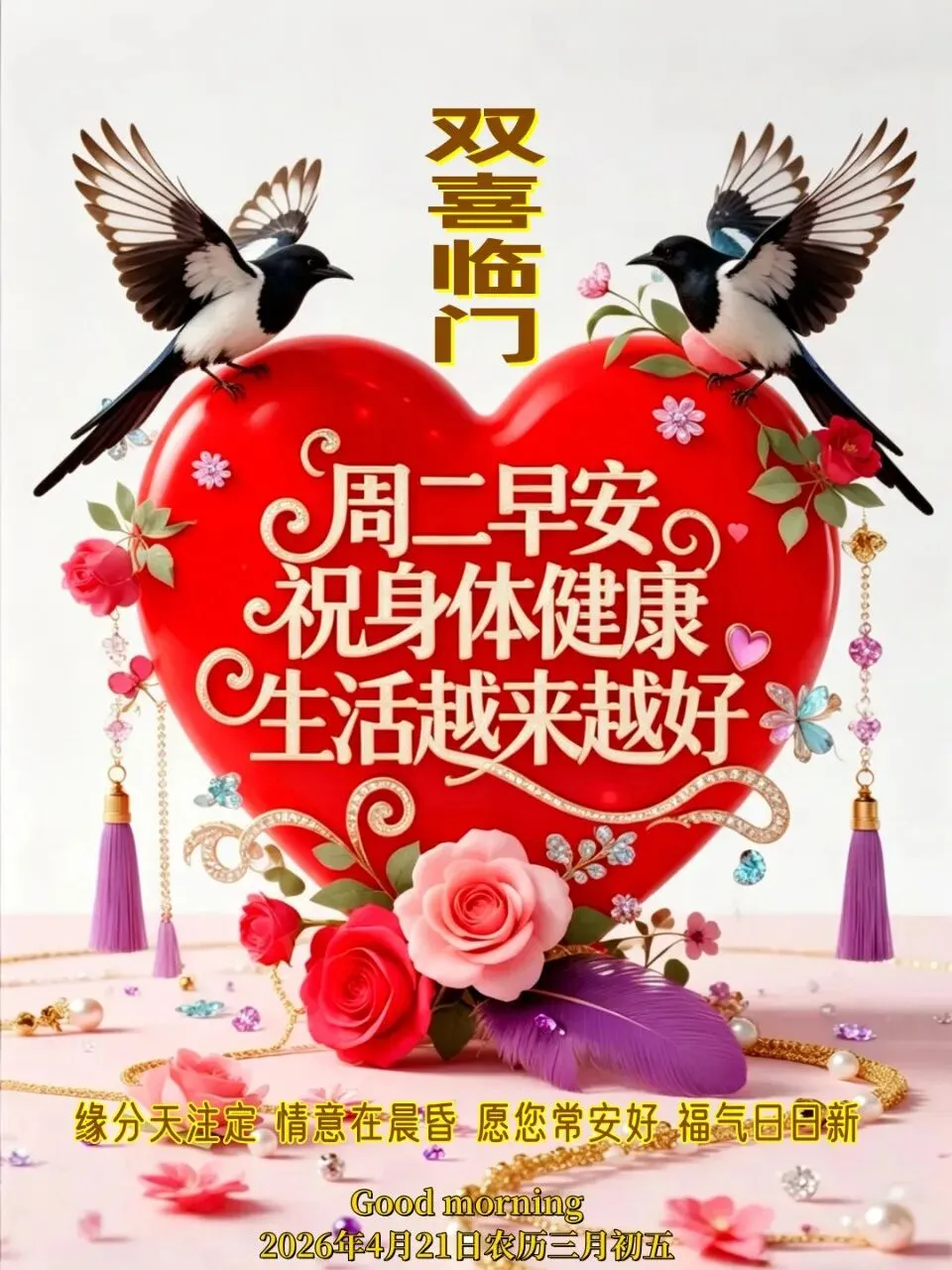 2026年4月21日周二早安图片,送一份祝福,平平安安,送一份心意,美美满满,送一份真诚,一路相伴!