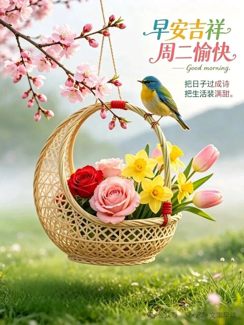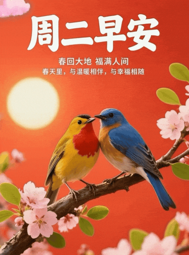 周二到,美好时光,同路而行🚶;美好日子🏞️,长相陪伴👫。人生有幸🍀,美好相遇💫,与春风作伴🌸,与温暖相依☀️。默默珍惜🤲,静静呵护🌱,情谊深厚💖,不负遇见🙏,不负流年⏳,愿往后岁月🌙,温柔常安。