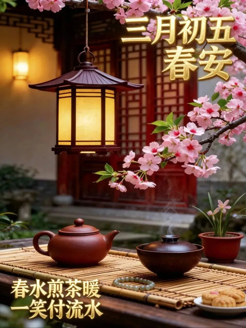 三月初五瑞气绕,早安吉祥送福报。三阳开泰福运到,五福临门喜眉梢。愿你生活多姿多彩,好运连连不断,平安喜乐日常,万事顺心如意!🥰🎶