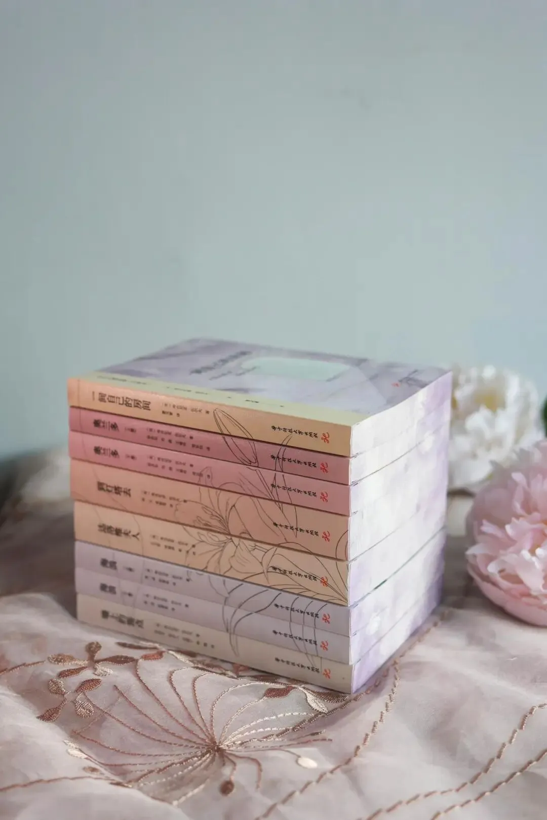 以百合花融入套系背脊设计元素中,以既定顺序摆放在书架上,你会收获一朵“英伦百合”