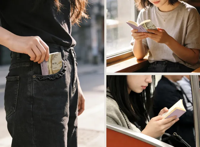 105mmX148mm经典文库本大小,比手机更小巧,单手可握,通勤地铁、咖啡馆、出差旅行、睡前片刻——
