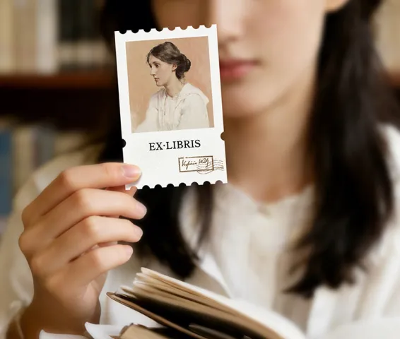 2.伍尔夫经典手绘藏书票,