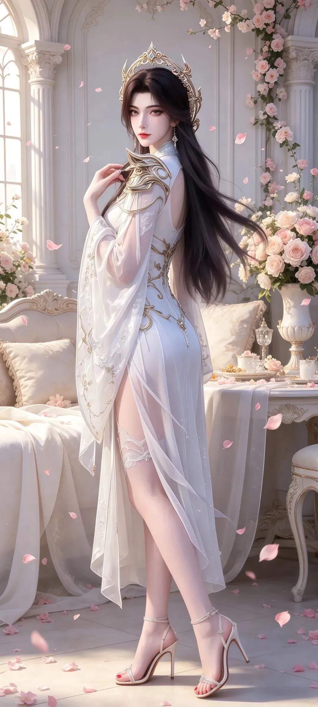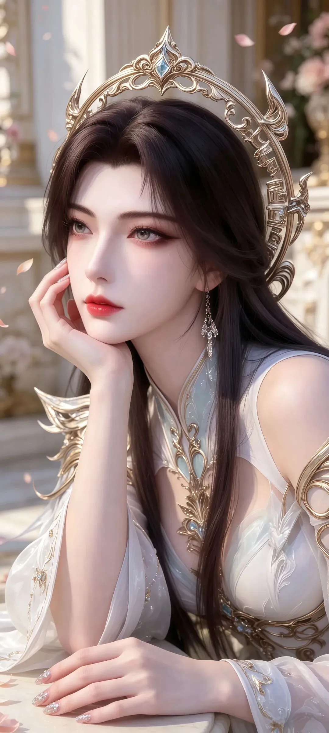 在国漫玄幻宇宙的传奇女神群像里,狠人大帝始终是最特殊、最让人一眼难忘的存在,而以她为原型打造的超清国漫女神壁纸,更是将这份震古烁今的绝世风华,以极致的画质定格成永恒,每一张都美得动人心魄,过目难忘。这些壁纸以顶级超清分辨率为基底,完美复刻了国漫中狠人大帝的封神建模,将“风华绝代,冠绝古今”的形象具象到每一处细节,哪怕放大数十倍,依旧看不到丝毫瑕疵。你能清晰看见她半遮容颜的青铜鬼脸面具,面具上的纹路斑驳沧桑,带着万古岁月的厚重感,却偏偏衬得露在外面的眉眼愈发惊艳;眼波如寒潭深湖,藏着跨越时空的寂寥,根根分明的墨色长发如瀑垂落,发间帝冠的宝石折射出冷冽又温柔的光泽。一袭素白仙裙随罡风漫卷,面料的垂坠感与薄纱的通透感被刻画得入木三分,没有浮夸的色彩堆砌,只用黑白金的极简色调,便勾勒出她帝者的无上威仪与绝世容光,只一眼,便再也无法忘怀。