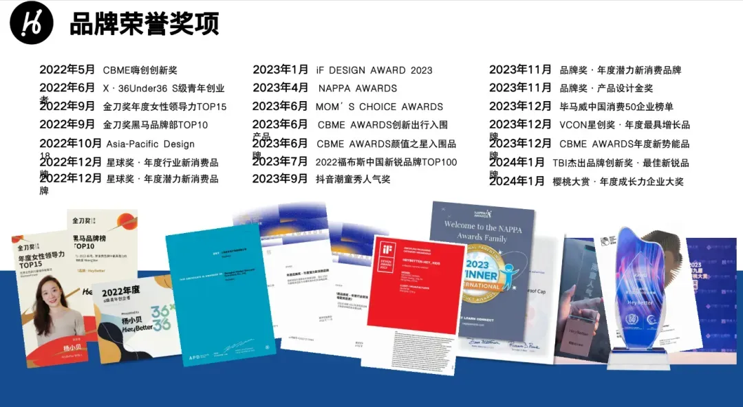 因为优秀,所以迅速成为童装界的黑马,一路都是获奖无数,在2023年7月拿到了2022年福布斯中国新锐品牌TOP100。2024年1月更是斩获了樱桃大赏年度成长力企业大奖。