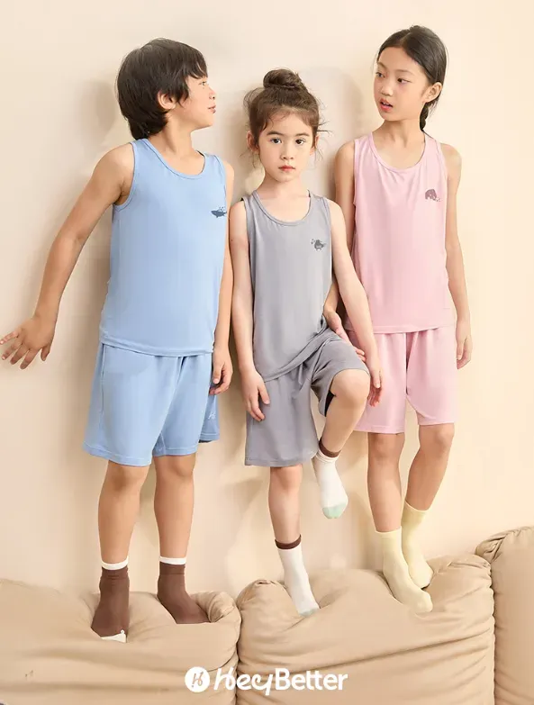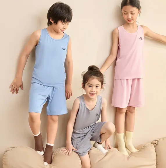 还有一款可以单独购买的软软背心,和家居服采用相同的材质,春秋可以穿在外套、衬衫里面作打底,柔软贴肤,夏天可以直接外出单穿,舒适凉快,上学也可以穿。到了冬天,习惯穿小背心的孩子,还贴身穿在秋衣里。