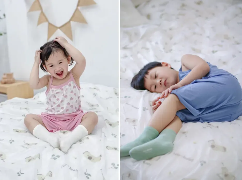 面料手感超级舒服,比普通棉质要柔滑许多,贴肤真的就像云朵般轻盈透气,弹性也很棒,娃穿着跑跳不会感受到一点束缚,自由极了!