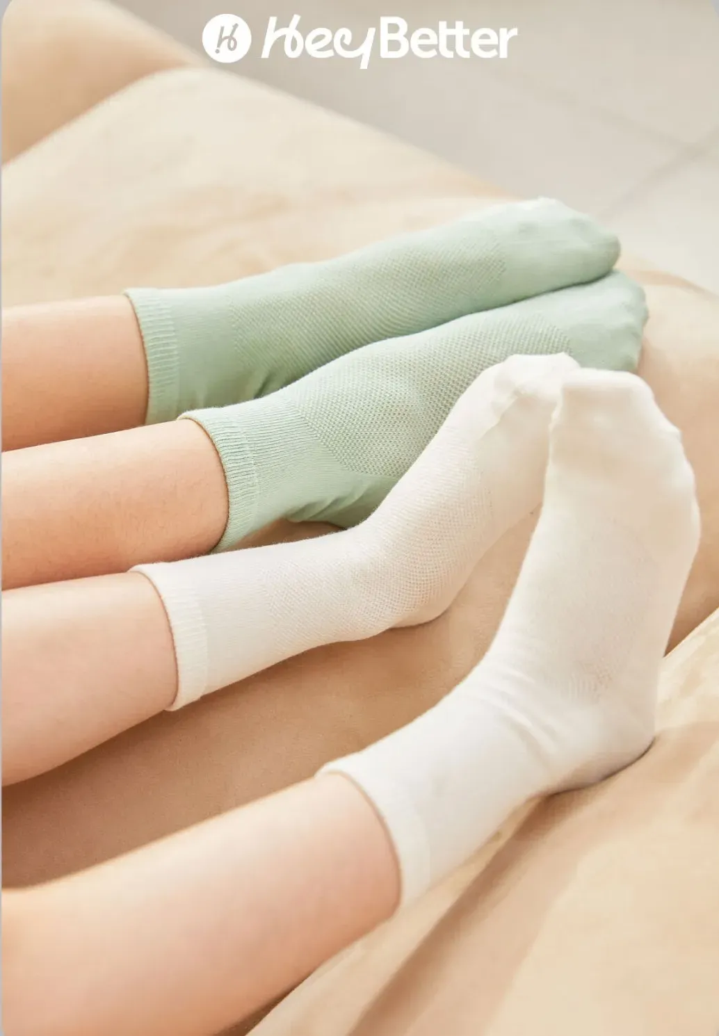 袜型是HeyBetter经典的95°直角袜型,不掉脚跟,也不勒小腿脚腕,无骨缝头也不会硌脚趾,穿起来非常舒服。