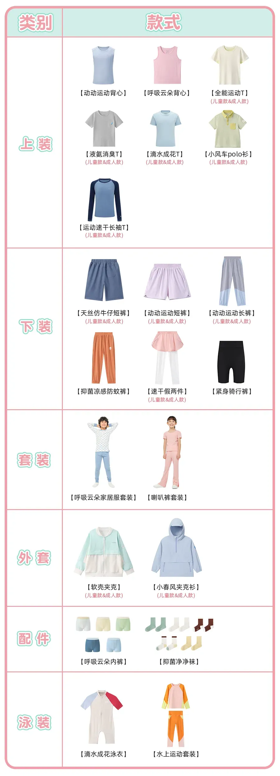 除此之外,运动速干T恤&背心、速干长裤、运动短裤这次通通都能安排上,娃的夏天运动装备也有了。