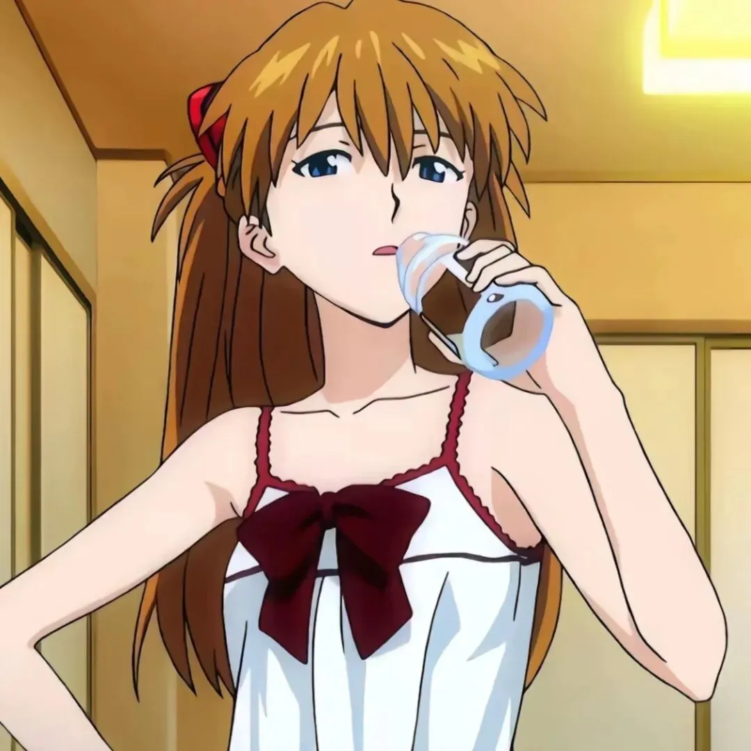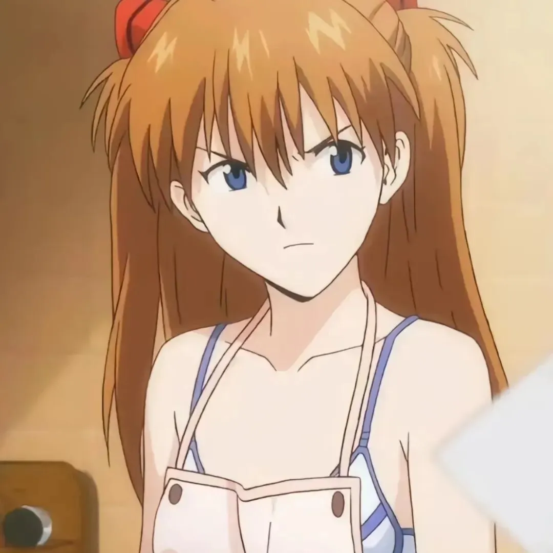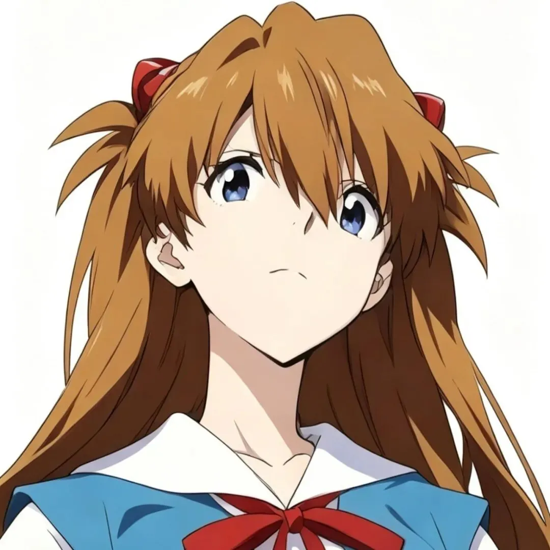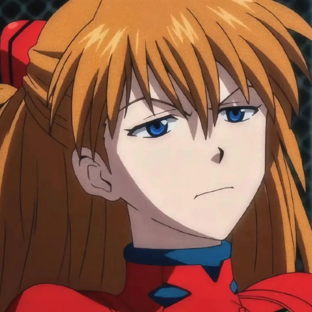 • 第一张,出自《新世纪福音战士》TV版官方原画。穿着红色驾驶服的香香,眼神锐利又带着一丝不屑,嘴角紧抿,完美还原了她作为二号机驾驶员时的骄傲与倔强。这张是她最经典的“傲娇脸”,做头像辨识度超高,一眼就能看出是我们的红发女神。