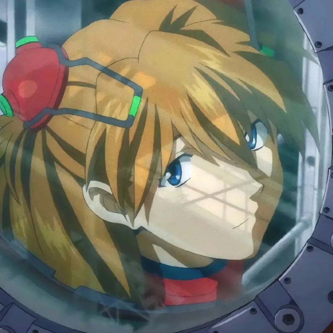 • 第二张,出自新剧场版破驾驶舱名场面。透过驾驶舱玻璃的她,眼神平静又坚定,带着刚经历过战斗的疲惫,却依旧不肯认输。玻璃上的水汽和反光,让画面多了几分破碎感,清冷又坚韧,是EVA里最让人心疼的名场面之一。