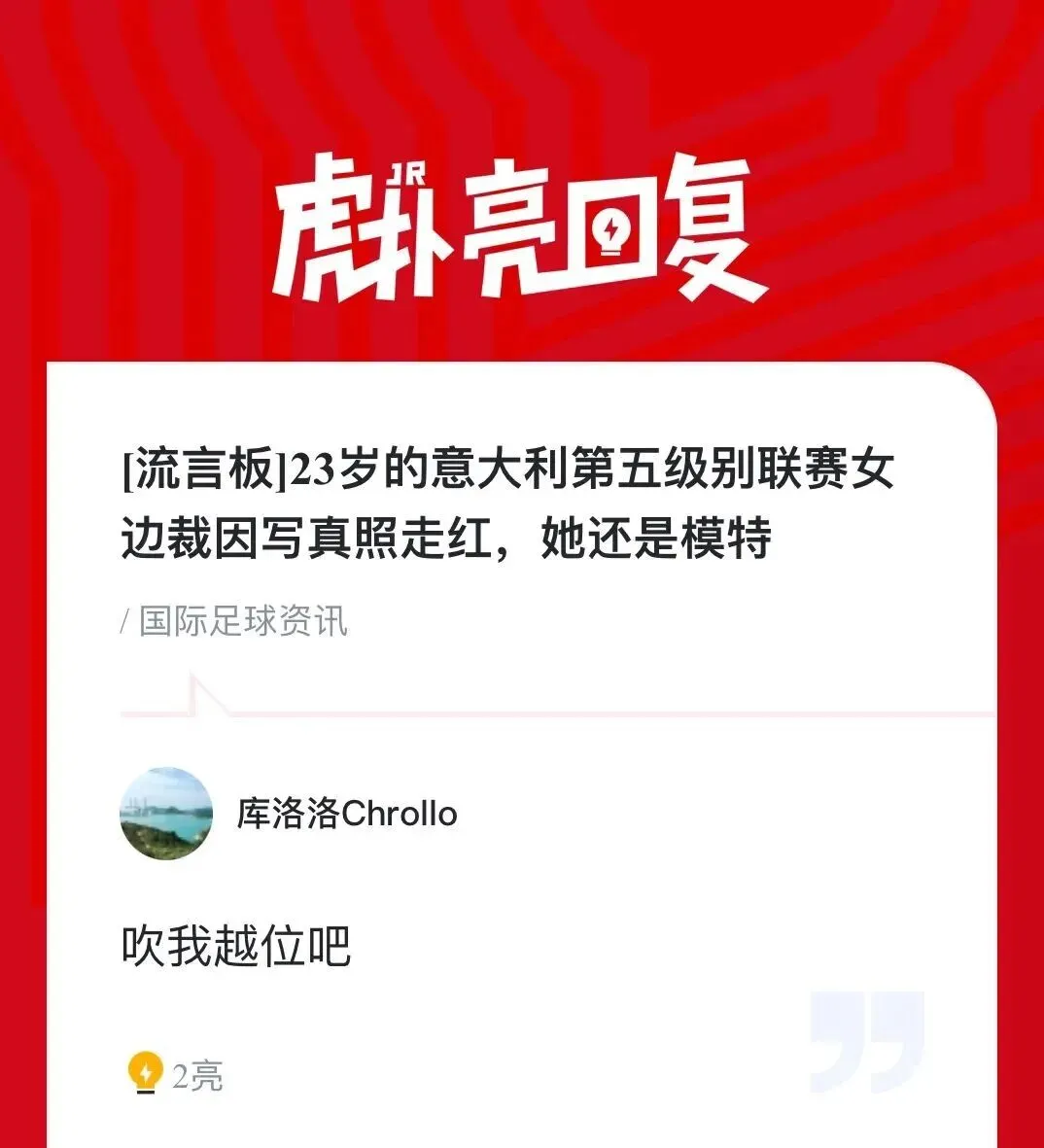最近,一位颜值惊艳的女边裁凭绝美写真爆红网络,许多球迷们也纷纷开始关注意大利第五级别联赛。