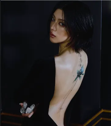 大胆露出的背部,从腰际到脖颈处纹有盛开的蜀葵图案。她解释道:“这个纹身,是从身后支撑着我活下去的另一个自己。它不只是设计上的美感,更刻入了我倾注其中的心意与回忆。”