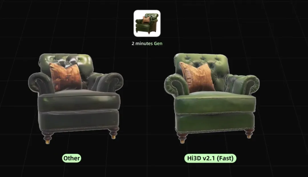 • AI 建模工具 Hi3D: v2.1版本更新,2 分钟生成高保真模型