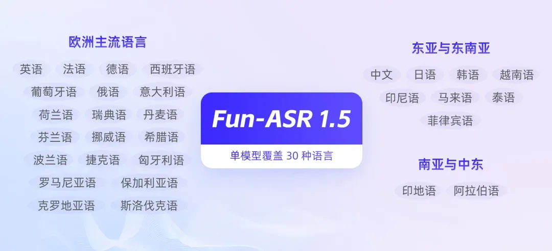 阿里:发布语音识别大模型 Fun-ASR1.5,支持 30 种语言及方言