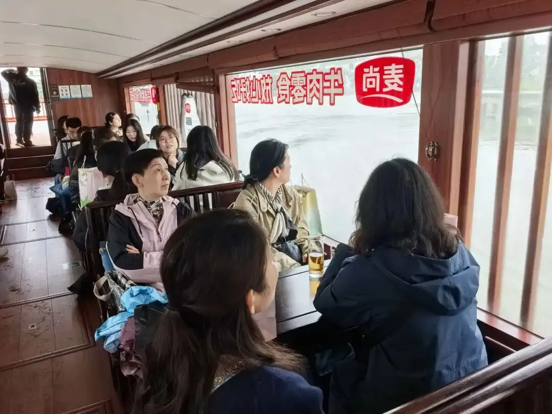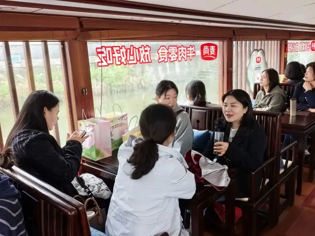 上午,女职工们从丁山湖码头出发,乘舟而行,碧水悠悠,两岸春光尽收眼底。伴着 “摇啊摇,摇到广济桥” 的美好意境,大家泛舟水上、闲话家常,在慢时光里卸下疲惫,感受水乡古镇的温婉与灵动。