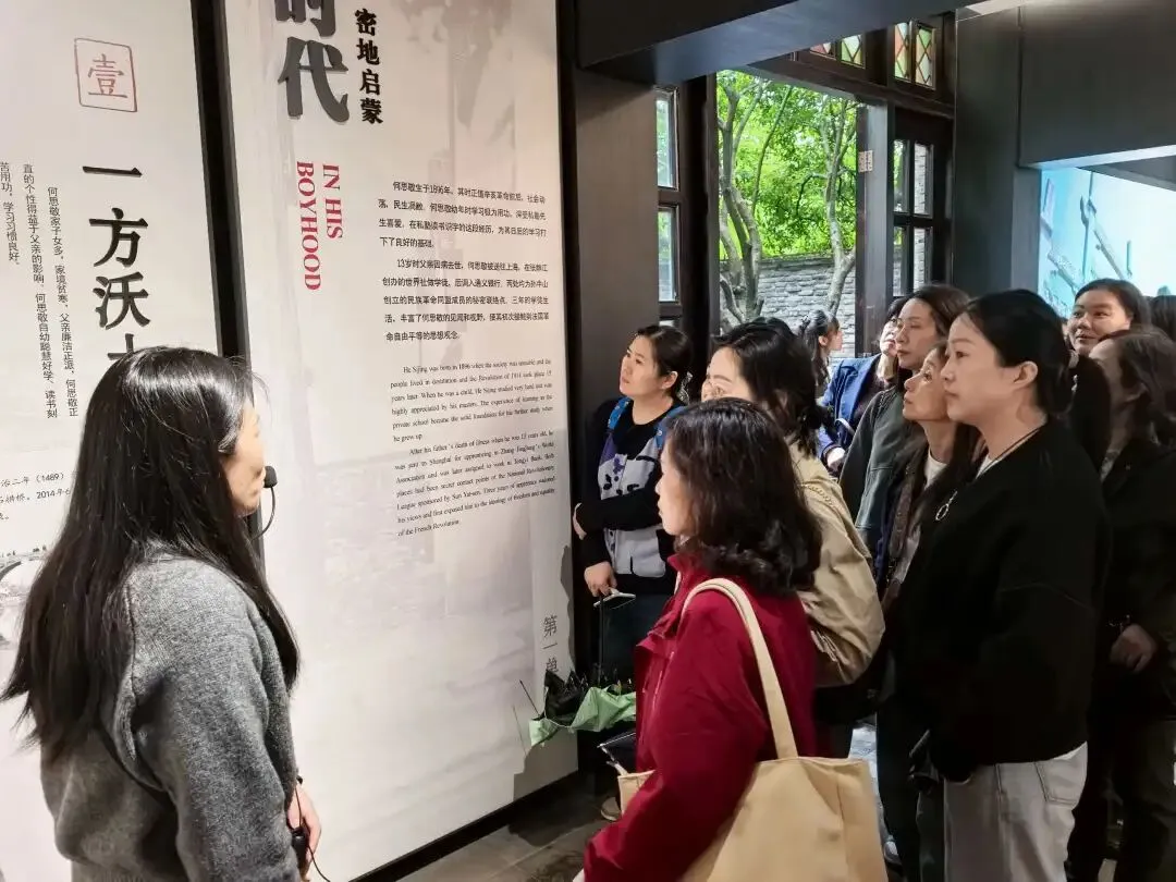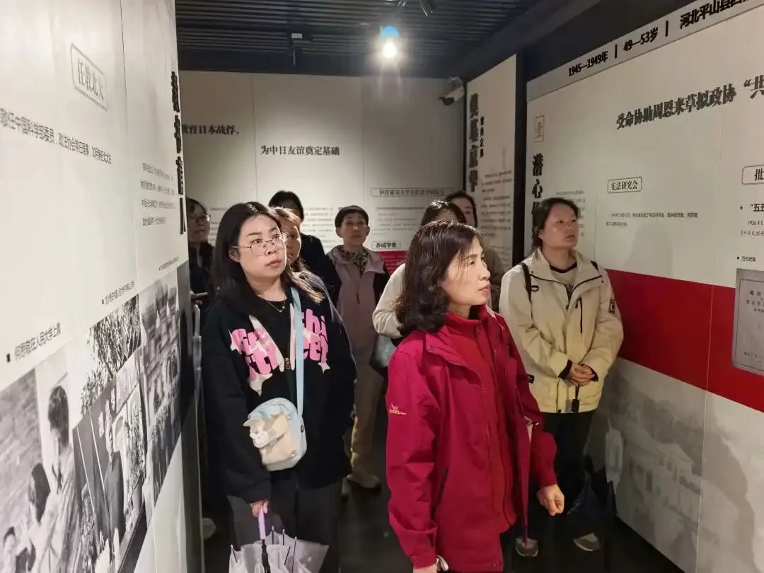 登岸后,女职工们走进何思敬纪念馆。馆内陈列着珍贵的史料与遗物,大家静静聆听这位从塘栖走出的法学家、红色法学奠基人的生平事迹。在书香与历史的沉淀中,感受先贤的风骨与家国情怀,为这场春日之行增添了一份庄重与敬意。