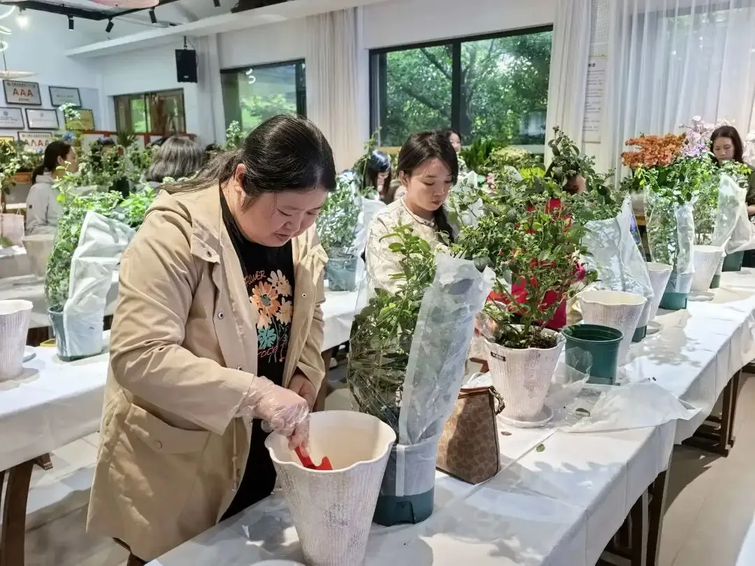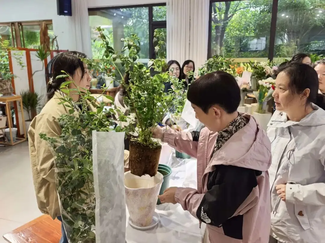 下午,走进油车弄榨油遗址公园・名卉花艺,一场温馨治愈的蓝莓种植体验如约而至。女职工们认真学习了蓝莓喜酸、畏涝的习性与盆栽养护要点。随后的种植环节,大家运用所学,兴致勃勃地配土、栽苗等,亲手种下希望,在草木芬芳中感受生活之美,提升审美情趣与生活仪式感。