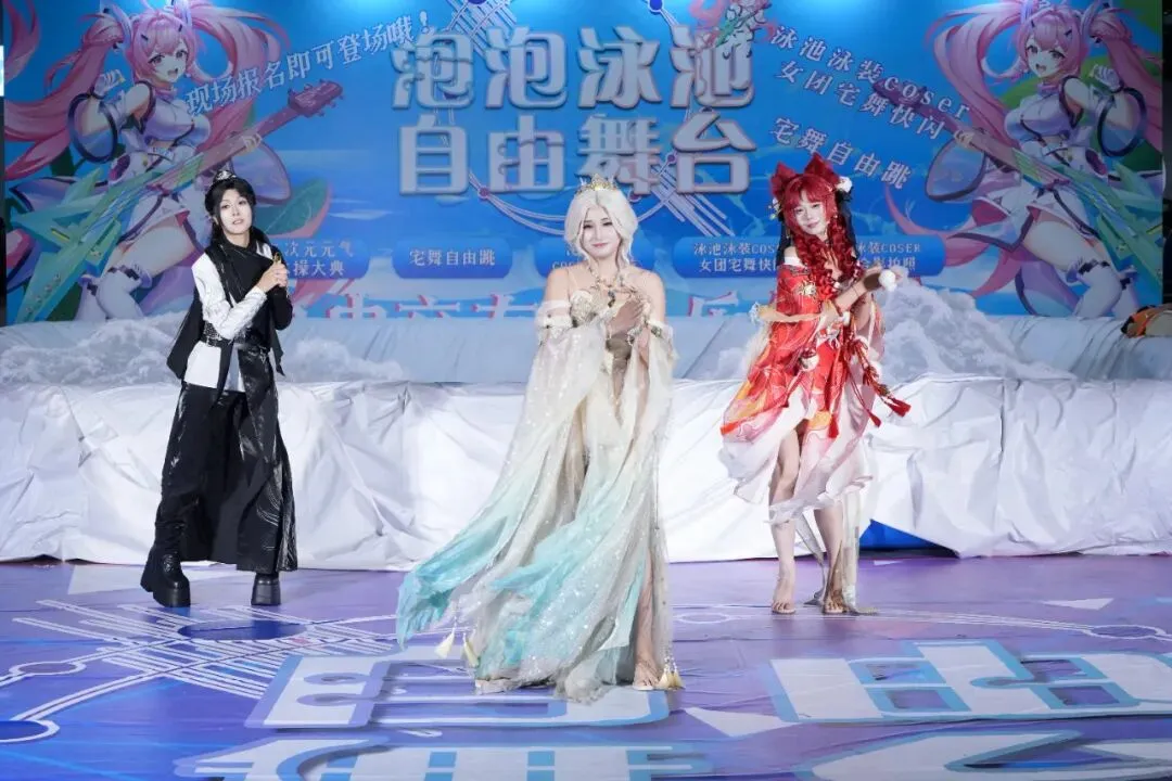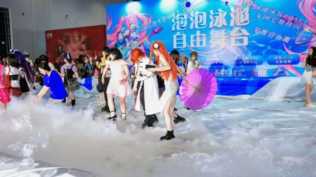 漫展现场绝佳打卡好地点哦!还有二次元歌舞秀,身着泳装的小姐姐们的精彩表演千万别错过辣!