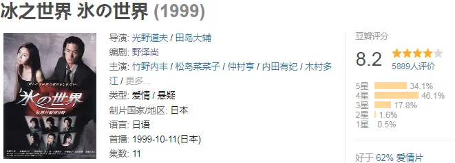 日版的女主,清冷疏离中带着脆弱感,那种“冰”的气质是从骨子里透出来的。