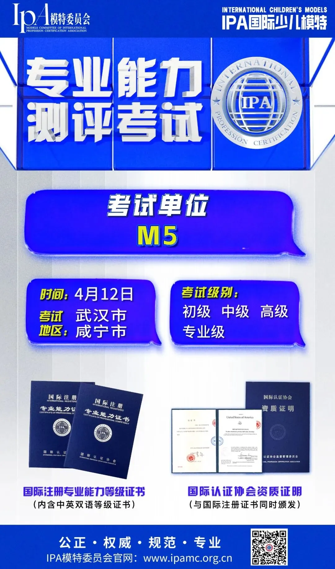 参加IPA测评考试是对当下学习状态的一个最有效的标准评估,通过测评获得国际含金量极高的证书。IPA少儿模特专业能力证书,全球通用、为孩子艺术成长之路沉淀价值。