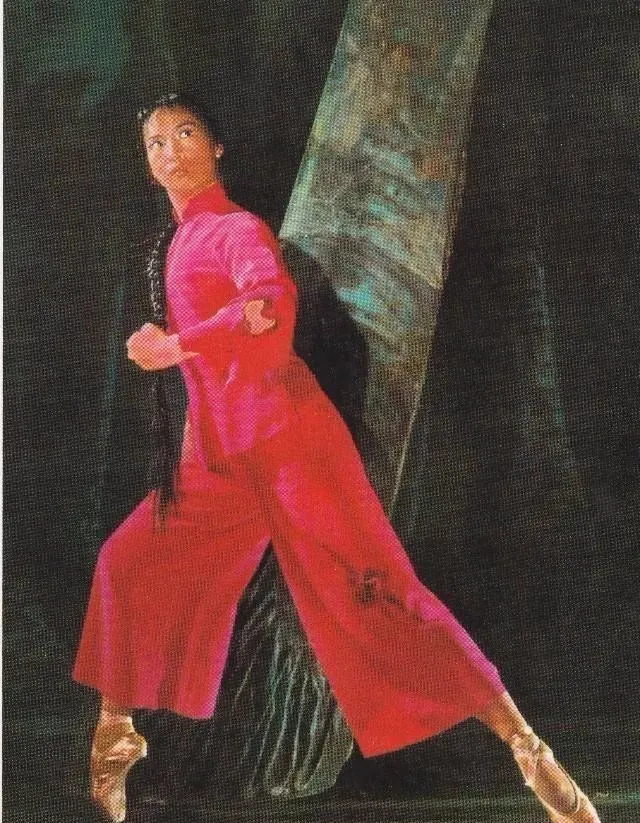 芭蕾舞剧电影《红色娘子军》中,演员薛菁华扮演的吴清华(即吴琼花),一身红衣、高挑动人,舞姿婀娜刚健,出场不久,就以“倒踢紫金冠”的经典造型震撼人心。