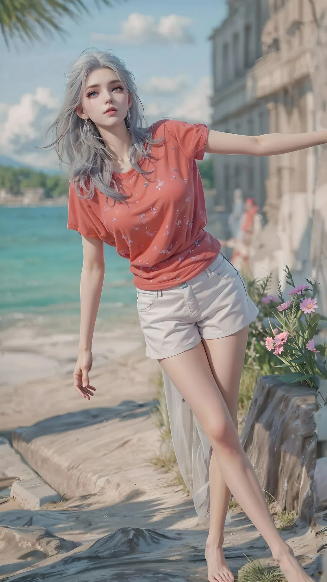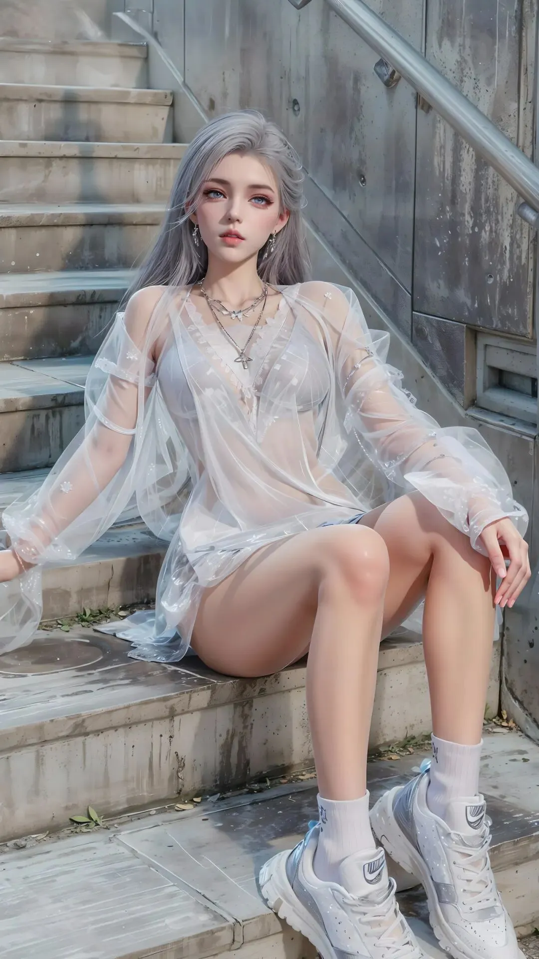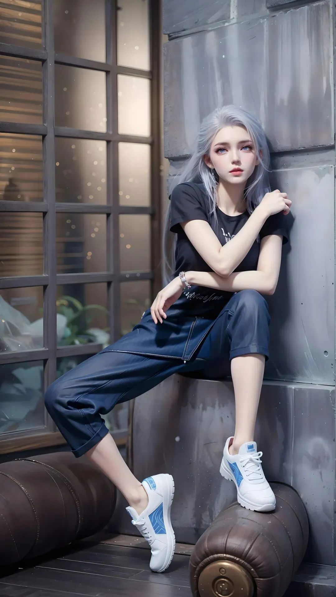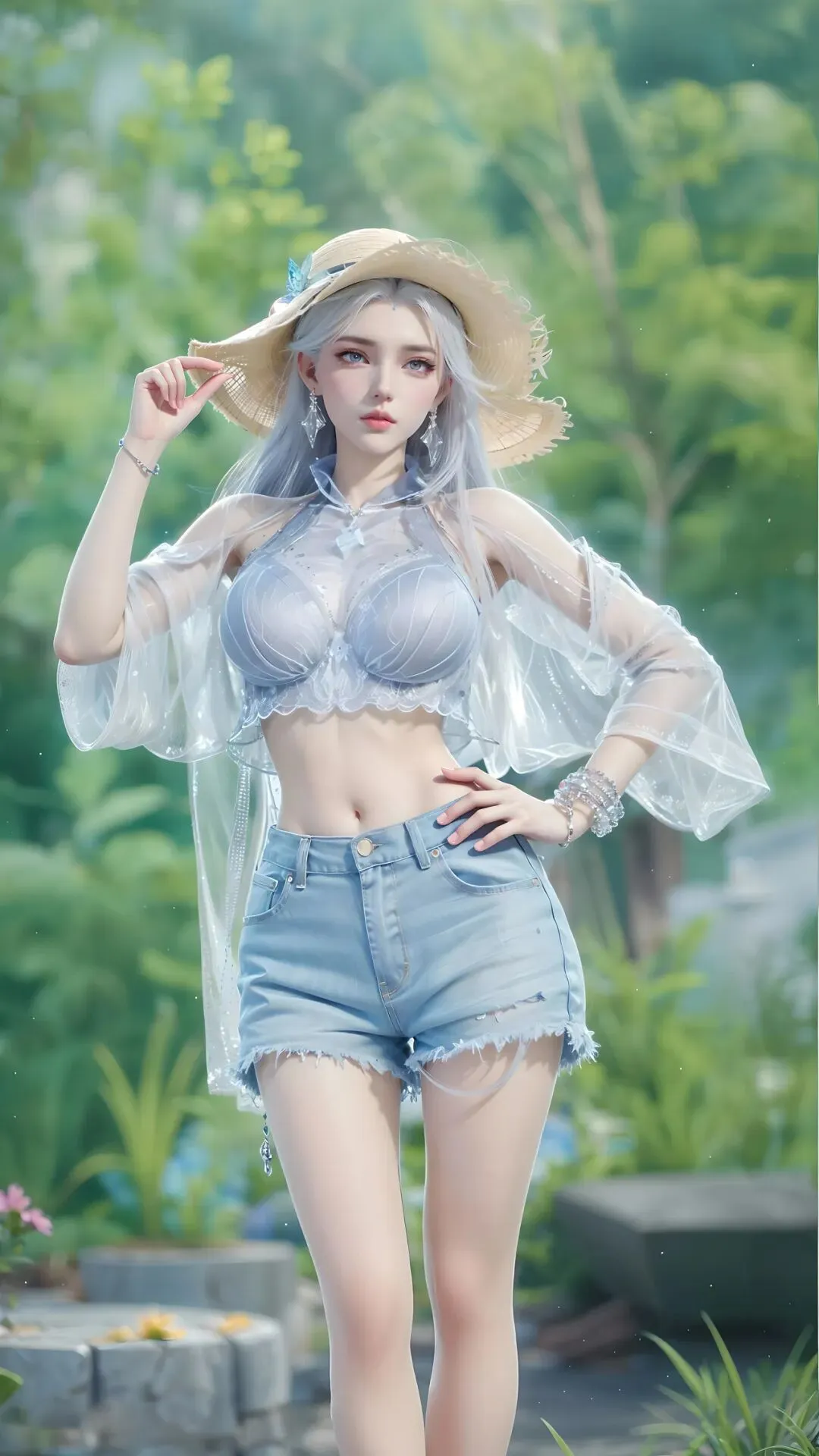 都市街巷里,她慵懒倚靠,银发轻垂,清冷疏离的气质浑然天成,不沾染半分世俗烟火,于喧嚣尘世中,自成一方冰封秘境,一眼便让人沦陷。绿野林间,草帽轻戴,蓝白衣衫衬得身姿灵动,寒冰般的冷傲被绿意温柔化解,宛如误入人间的冰雪精灵,满眼都是澄澈与清甜。