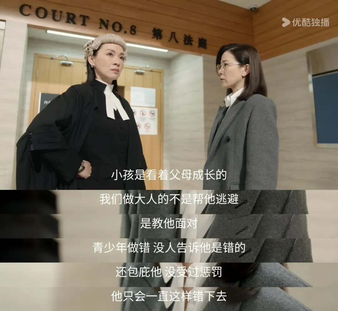 我喜欢主创们对高成彬的塑造,不单一化,坏得有逻辑。小时候误杀绑匪让他心理逐渐扭曲,高淑桦忙于工作未及时发现并进行疏导,等他长大犯罪后又一次次利用法律知识帮他脱罪(不管是王颂星还是高淑桦,陈炜一直在送儿子离港避风头,两部剧连着看真的有点好笑了),被忽视的成长经历和盲目的包庇,最终让高成彬一步步走向罪恶的深渊。看剧时常被反派吸引,我并不赞同他们的行为,但是我内心的阴暗面在他们身上得到了宣泄。