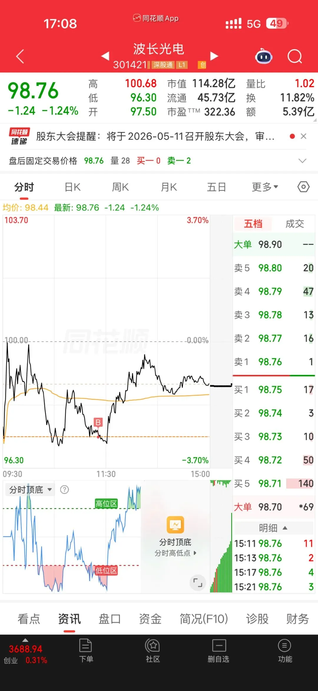 今天的波长,我是盯着分时线,等了一个小时,在11点多,它二次探底不破前低的时候,我果断按了买入键,在水下把筹码接住了。虽然没吃到日内的大长腿,收盘还是跌了1.24%,但我的成本线,直接比收盘价低了近2个点。别小看这2个点,在这种震荡市,就是你未来反包吃肉的安全垫!