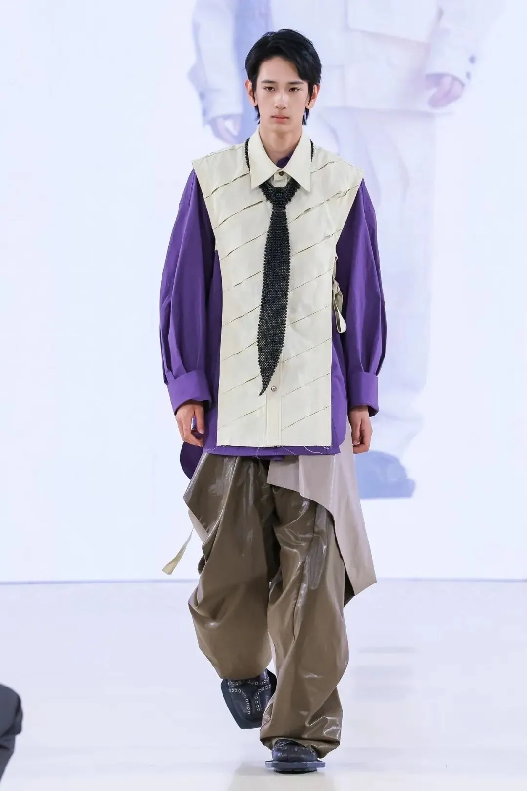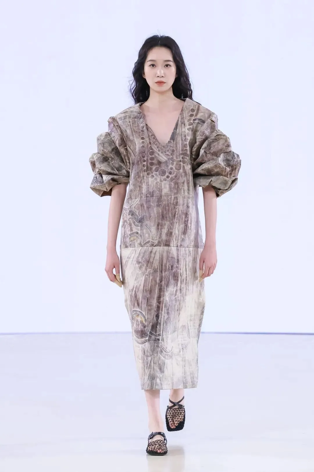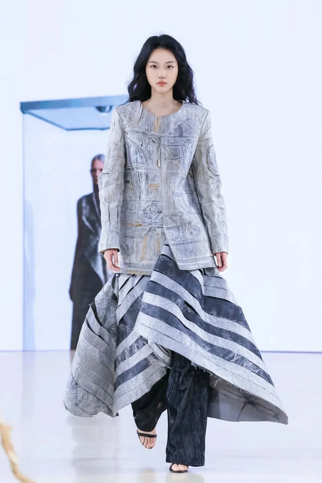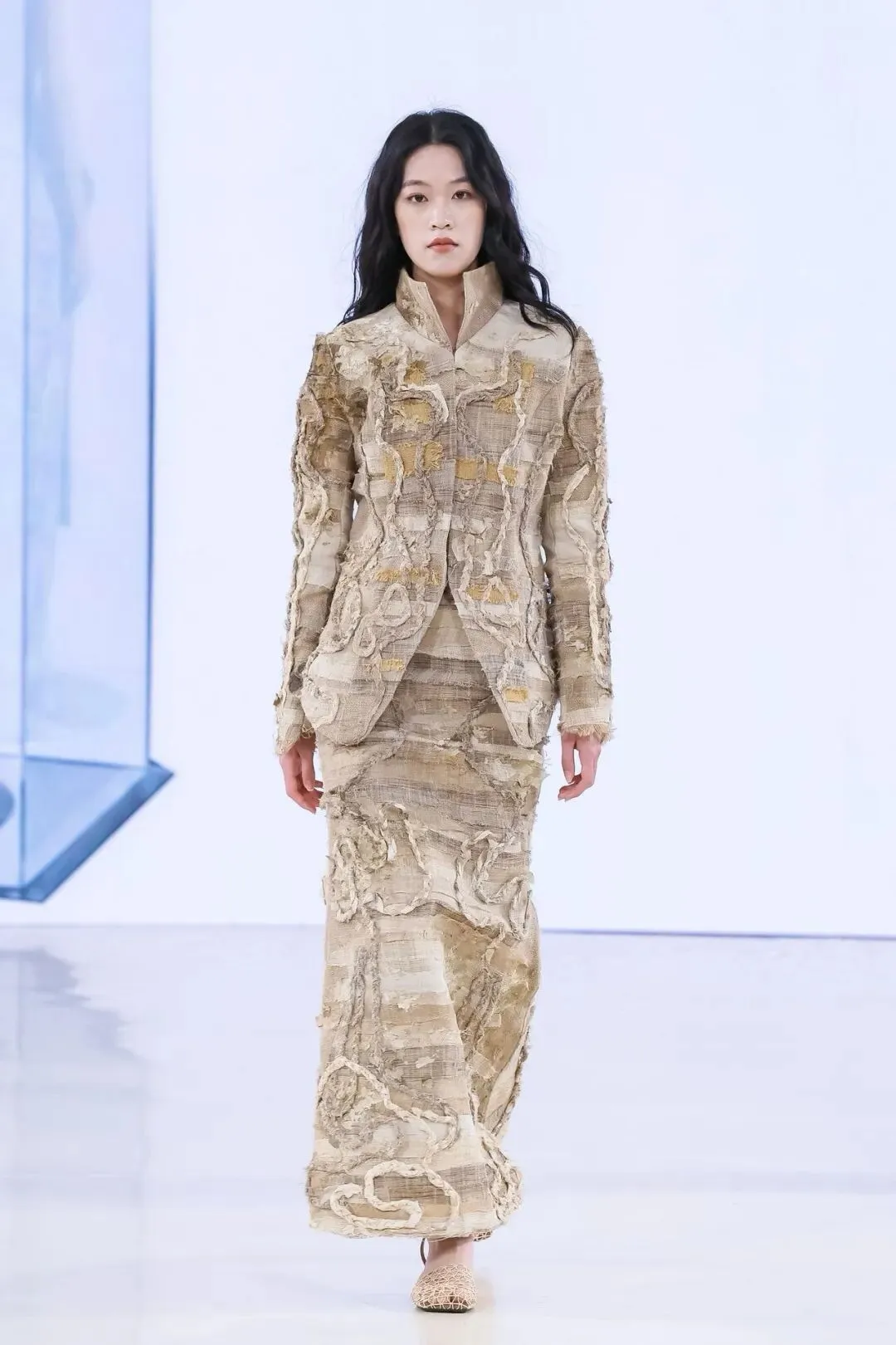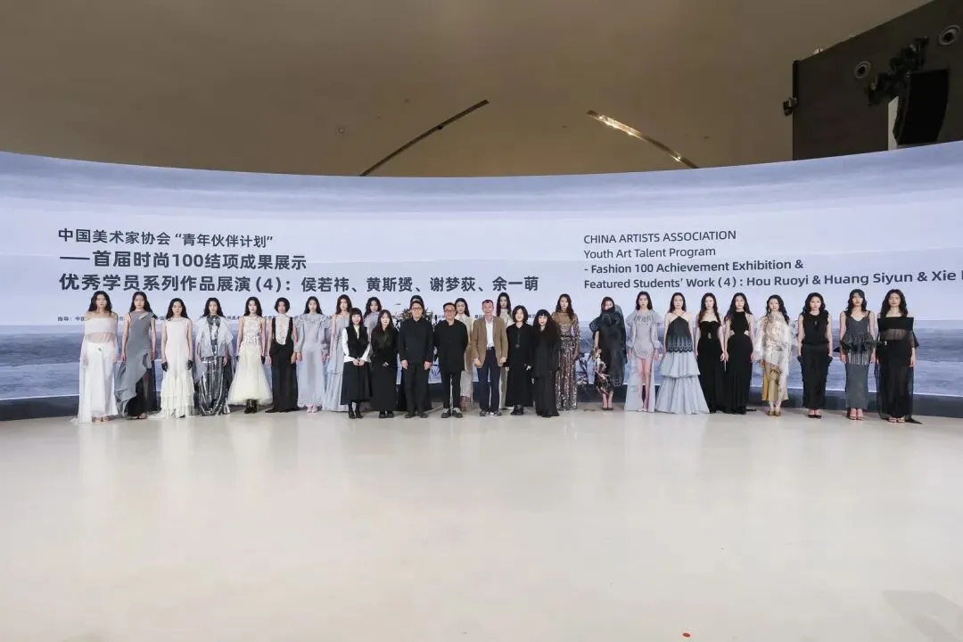 中国美术家协会“青年伙伴计划”——首届时尚100结项成果展示正在中央美院美术馆已经进入尾声。每一件作品都是青年设计师对东方哲思与未来语境的深度作答:在这里,你能看到基于中国身体观、捕捉内在磁场流动的「风生水起」系列;能触摸到全3D打印柔性织物、以“可编程骨架”诠释可持续生长的《物质骨骼·花骨》;也能在《虚实余音》的动态装置与金属烧箔中,感受时间散尽后的身体记忆与视幻,更能欣赏《远洋的针线》中的轻盈与秩序交错。无论是将山峦柔美化作手工流苏与温润贝母的“方圆天地”,以千年石窟风蚀肌理诉说“残缺即圆满”的旷达之作,还是将“天地六合”道家哲思转化为正负型空间剪裁的“方寸之间”系列——它们皆以探寻创作本源为内核,深耕中华美学传统,同时以开放的视野接轨国际前沿,将东方意蕴与先锋表达精妙交织。