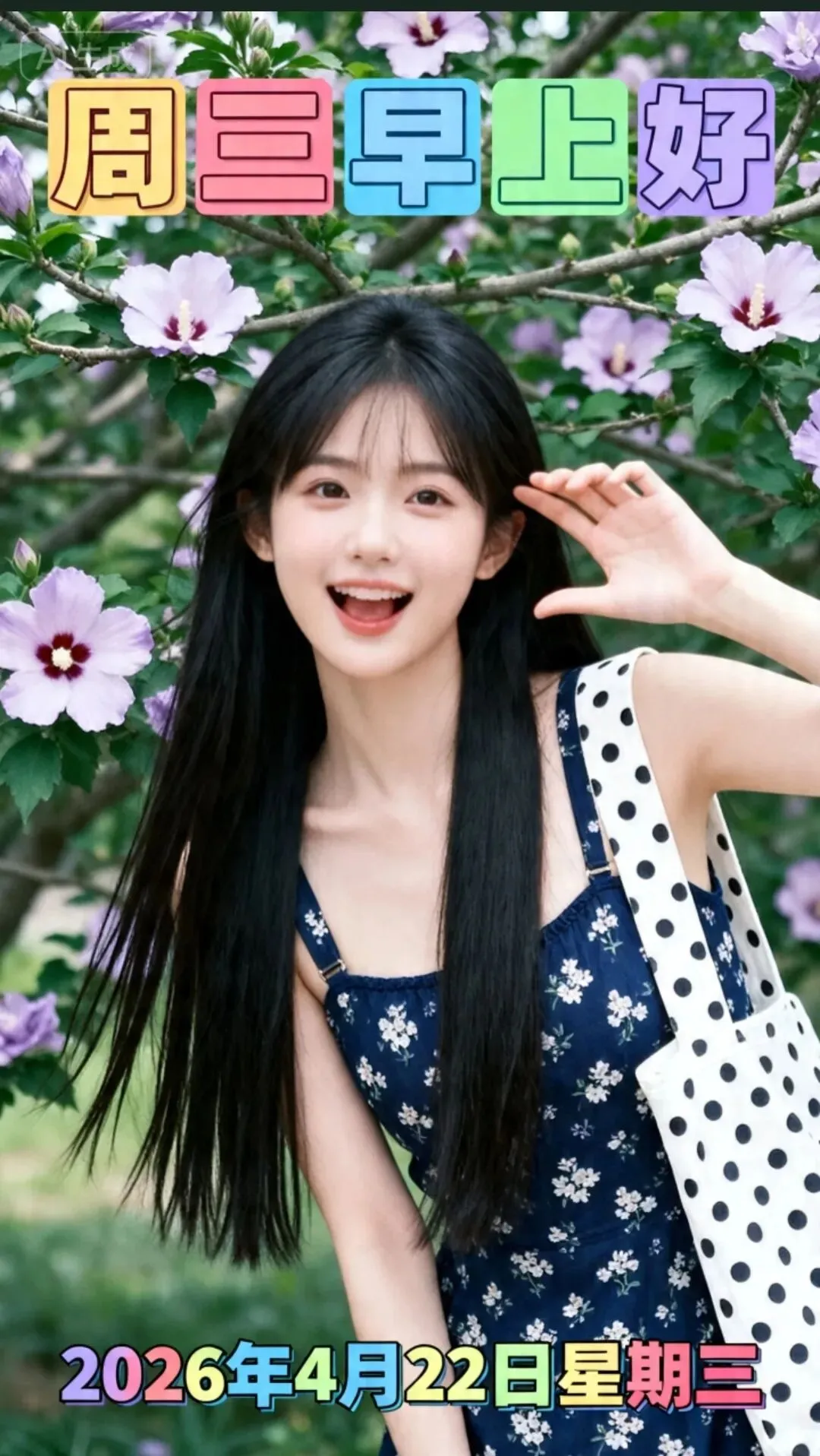 当前位置:首页>美女资讯>2026年4月22日星期三早上好图片,最新周三早安漂亮动态图片,周三祝福语精选.