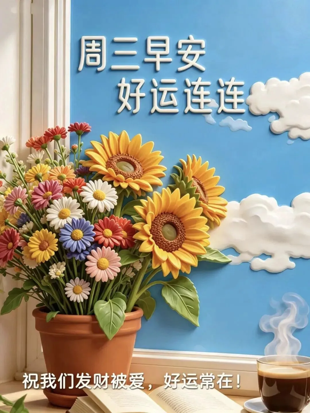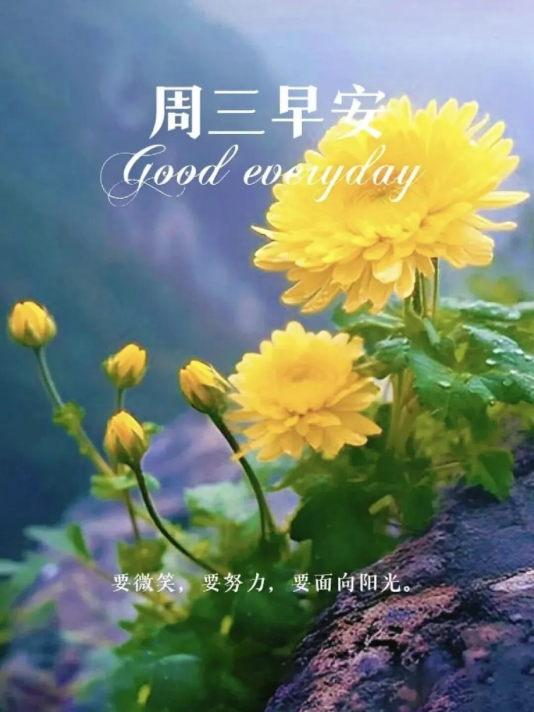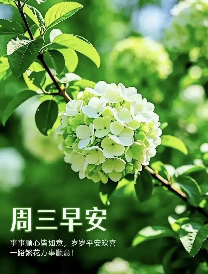 周三早安!把所有烦恼留在昨天,把满满希望装进今天🌞,愿你今日前路坦荡无阻,所求皆能如愿所得,马年行大运走福路,霉运烦恼全消散,三餐四季皆安康,岁岁年年皆欢喜,周三早安。