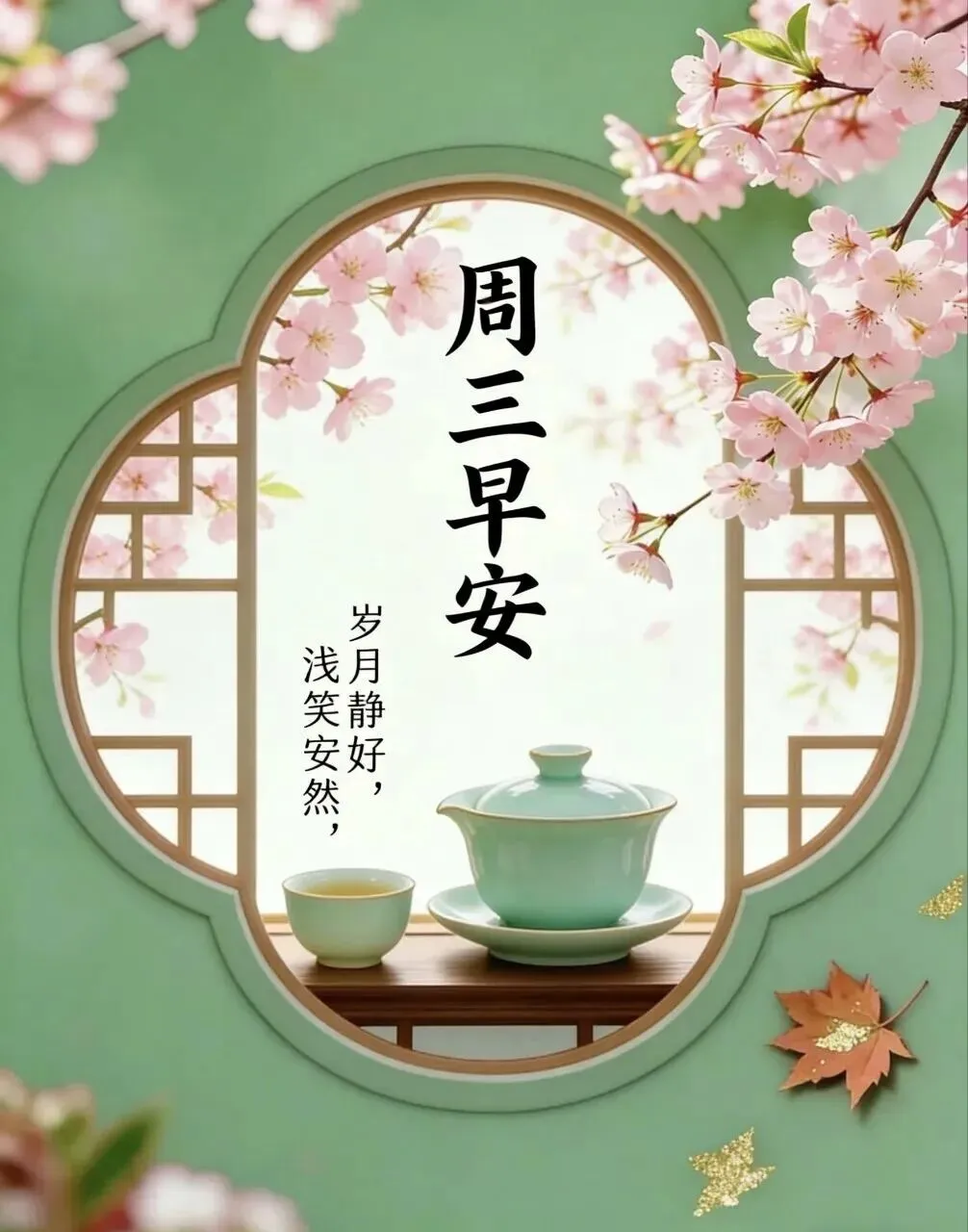 周三早安!一周过半美好正当时✨,不必焦虑不必匆忙,把生活节奏慢慢放缓,用心感受日常里的每一份温柔与甜,愿你三餐四季都温暖,岁岁年年皆平安,马年好运接踵而至,工作顺心如意,家人平安健康,周三万事皆如愿。