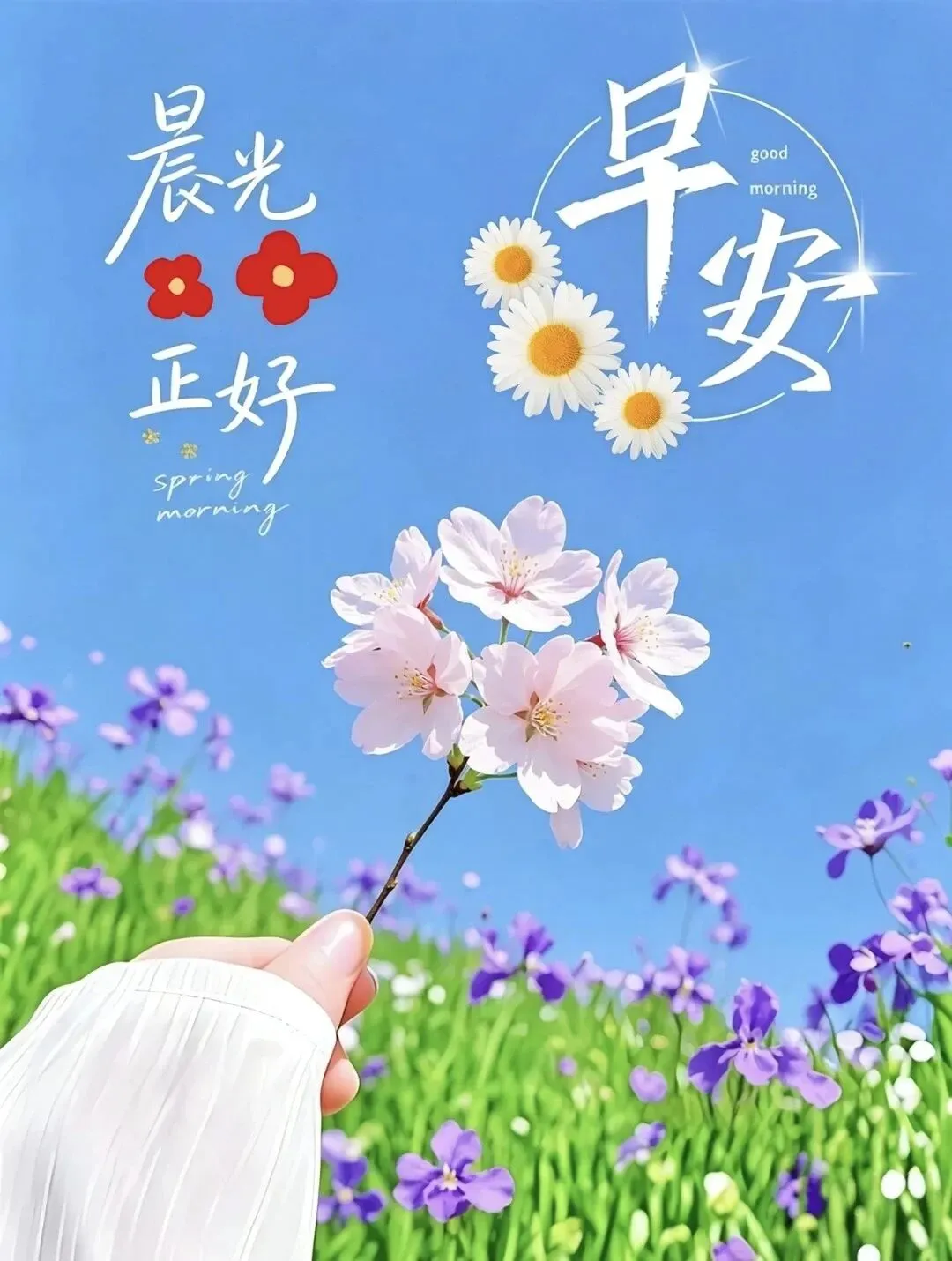周三早安!阳光正好微风轻柔,花开正好香满枝头🌸,愿你今日出门遇见美好,归家收获温暖,每一步都走得安稳踏实,马年福运绵长不断,生活有盼头有滋味,万事皆可期待,周三早安。