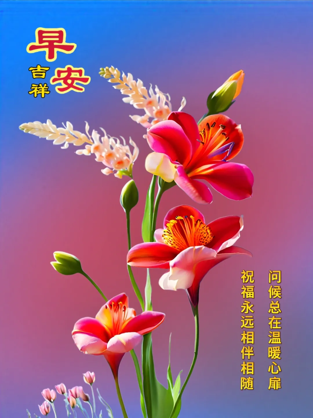 晨风送福到门前,愿您日日笑开颜。健康平安是本钱,财源滚滚福满天。家庭和睦心温暖,快乐生活比蜜甜。早上好!