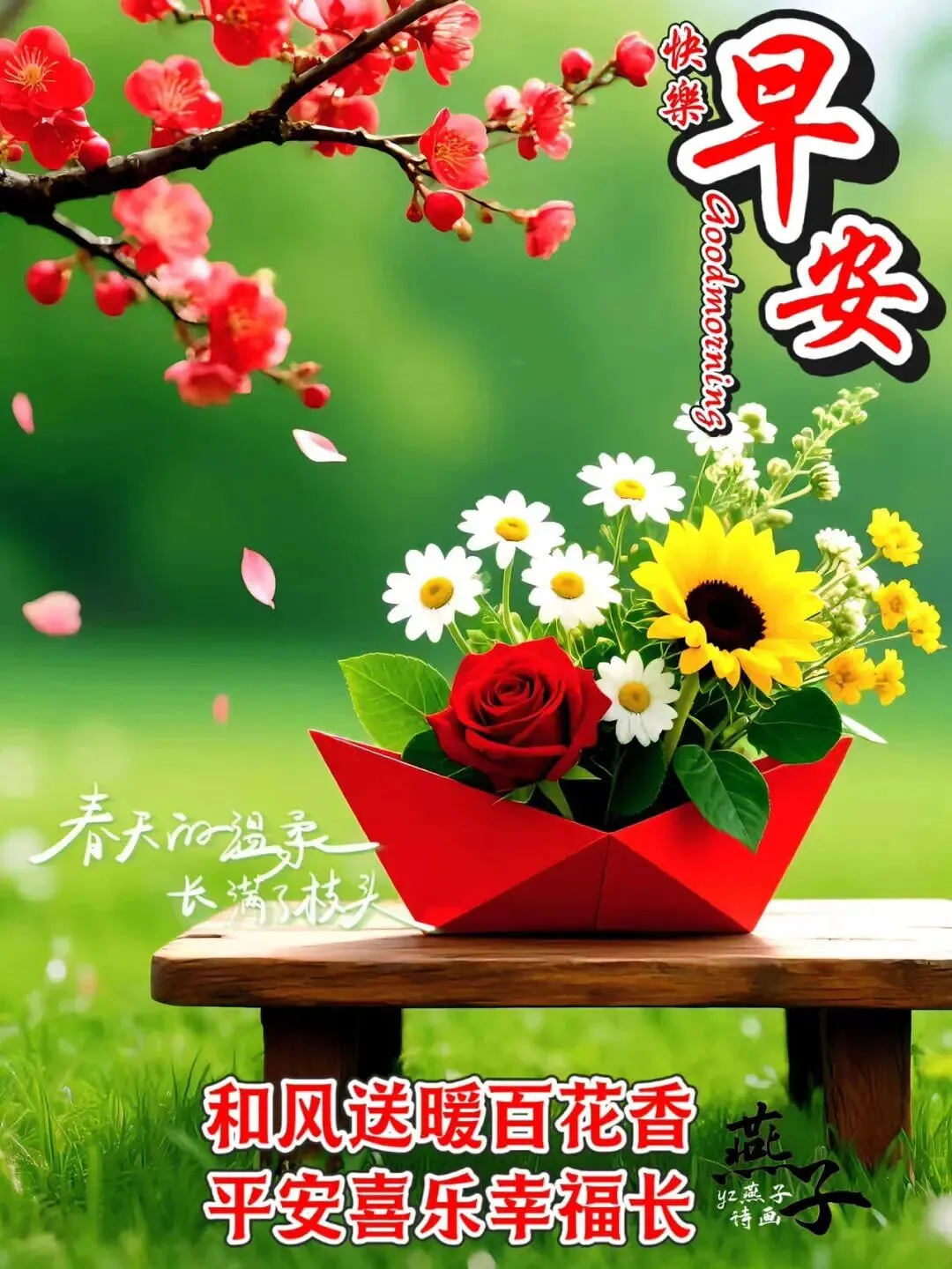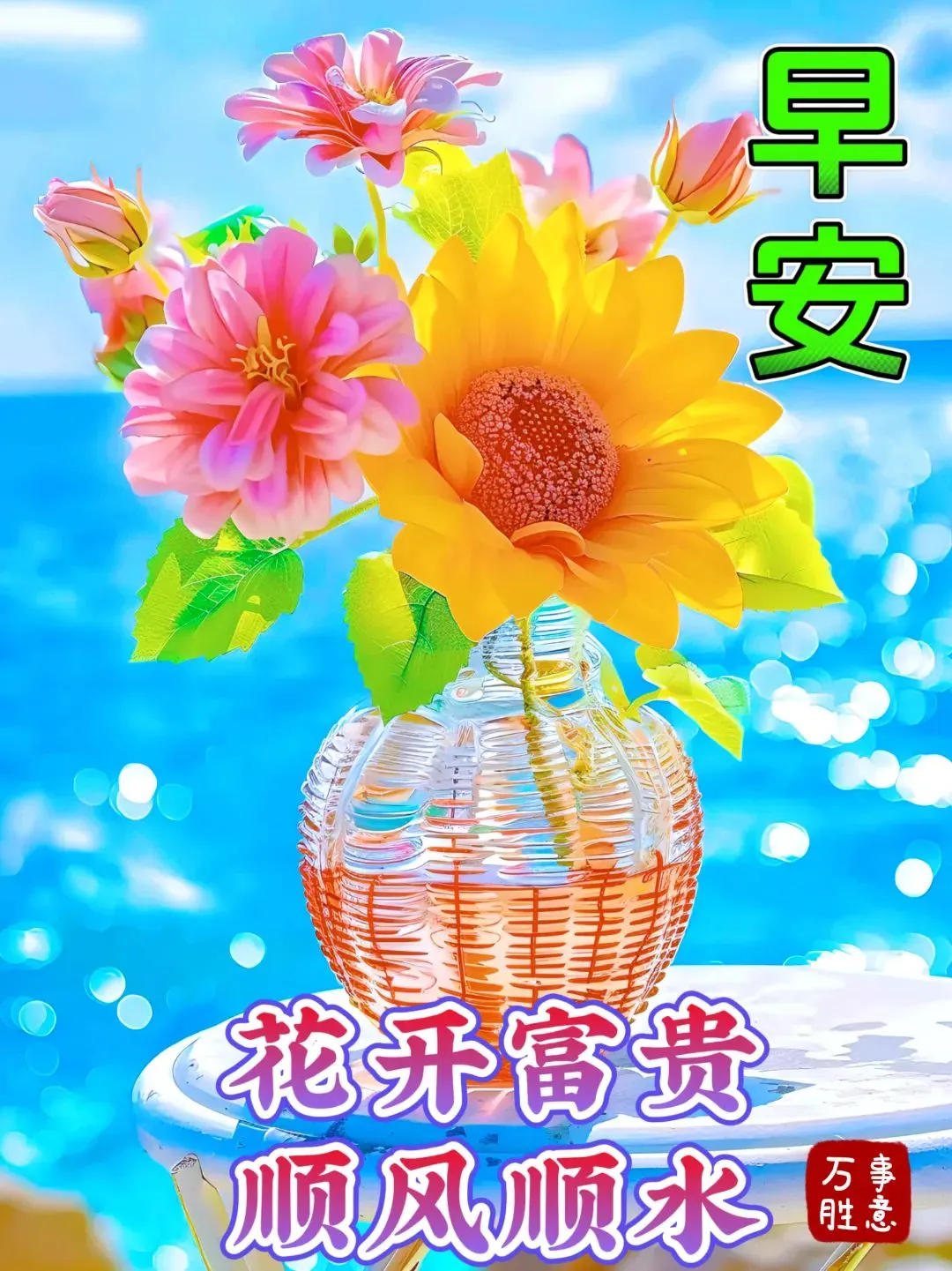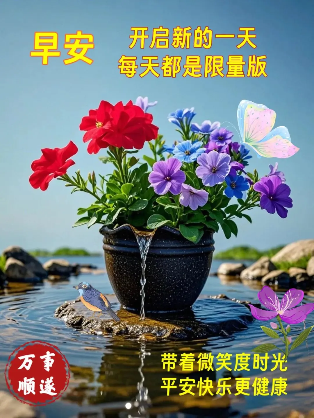 晨招平安午招财,晚招鸿福一齐来;吉祥如意好景致,健康快乐福门开;愿你顺心加如意,天天快乐吉祥在。早上好!🌹😊🌺🤝☀️🎉