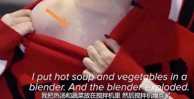在2012年卢靖姗在做奶油蔬菜汤时,料理机的盖子突然崩开,猝不及防的她被烫伤了。