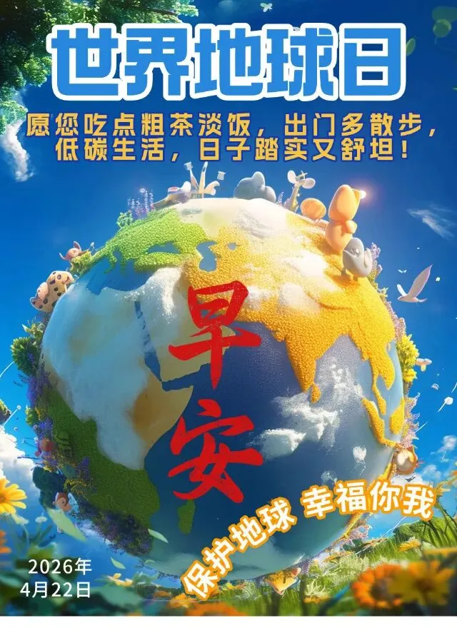 当前位置:首页>美女资讯>2026年4月22日世界地球日早安|早安好图片壁纸,早安问候祝福;如何做好地球家人从日常开始!