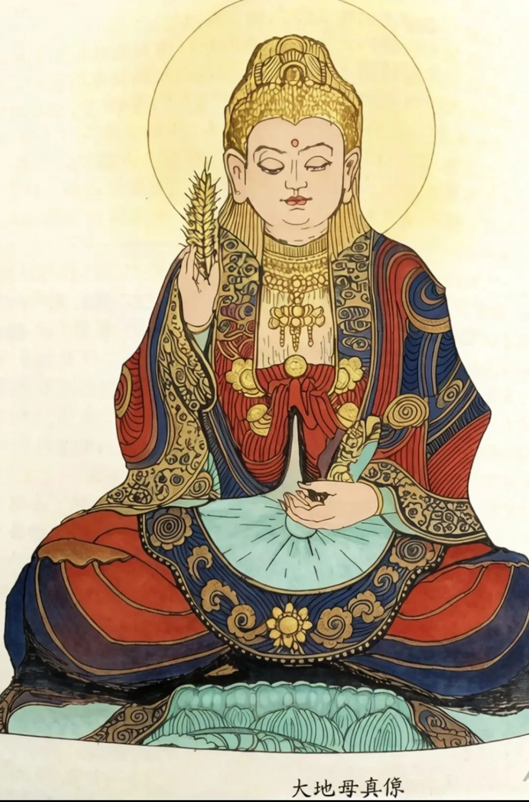 * 佛教坚牢地神:又称持地菩萨、地天,是佛陀亲口赞叹的大地守护神。《地藏经》云:“汝大神力,诸神少及……阎浮土地,悉蒙汝护,乃至草木沙石,稻麻竹苇,谷米宝贝,从地而有,皆因汝力。”佛陀成道时,地神从地涌出,为其降魔作证。