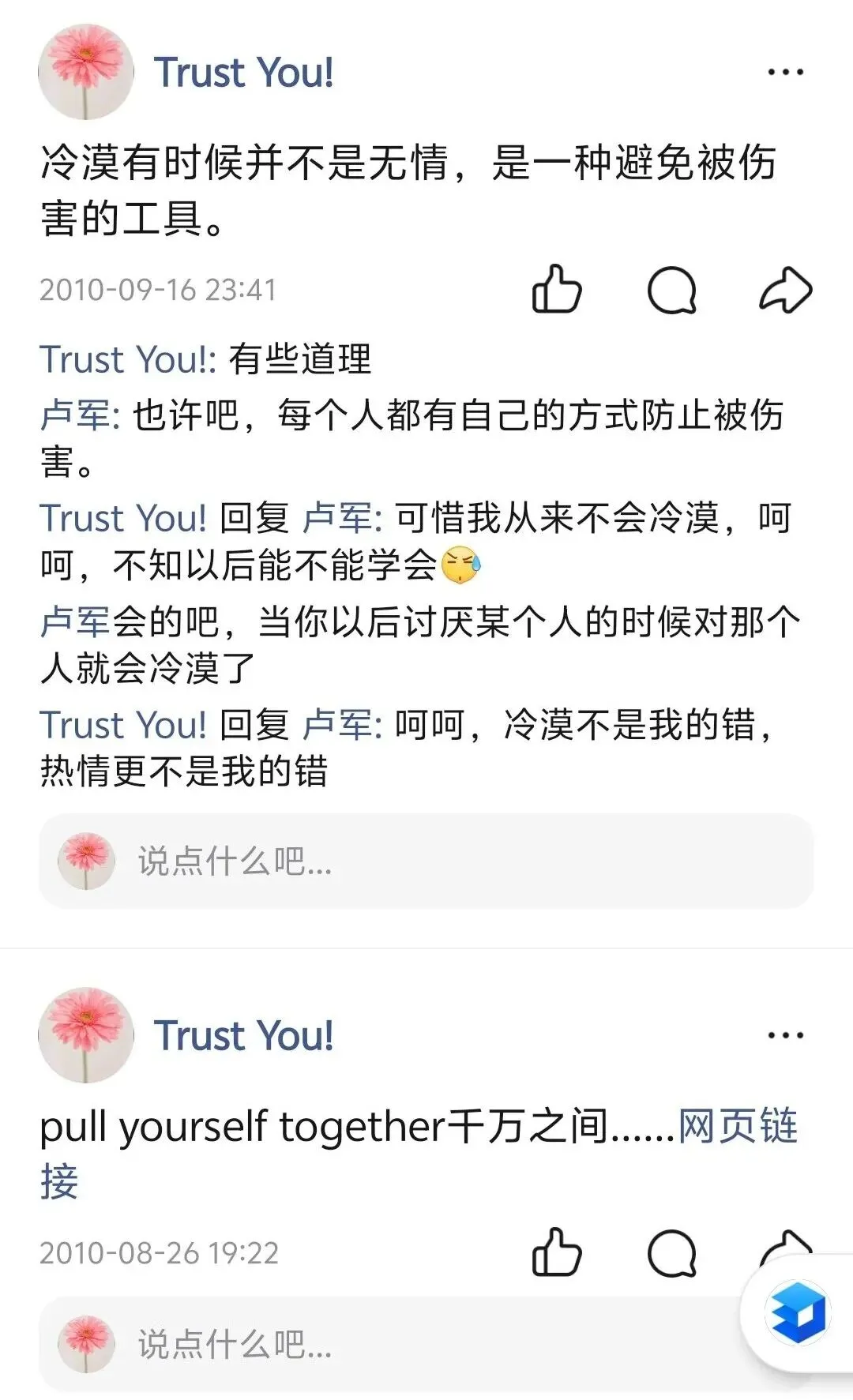 我们是大学校友,相识于校园社团。从校友发展到好友,缘起于我默默出手,帮过她一个忙。其实并未帮成什么,我也从没想过要她回报。可她,是个非常懂感恩的姑娘。她得知后,对我说了一段热情洋溢的话。原话我已忘记,大意恰似《还珠格格》里那句:“你肯对我推心置腹,我愿为你粉身碎骨。”我从小受教于 “滴水之恩,涌泉相报”,又听着侠义评书长大,骨子里早已被重情重义所浸润。所以,她的话,瞬间点燃了我灵魂中那簇赤诚的小火苗。于是,我们两个气质截然不同的人,成了好友。