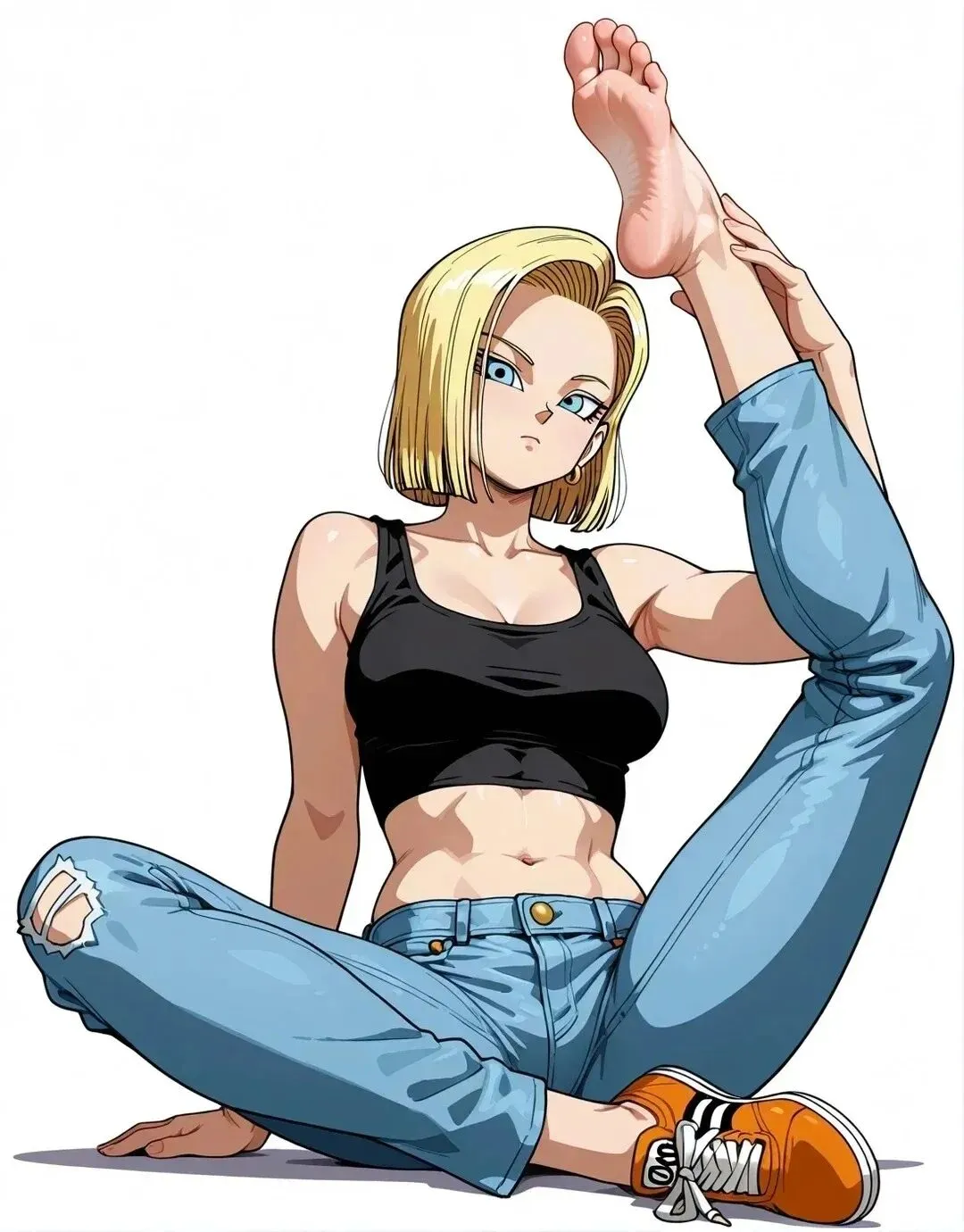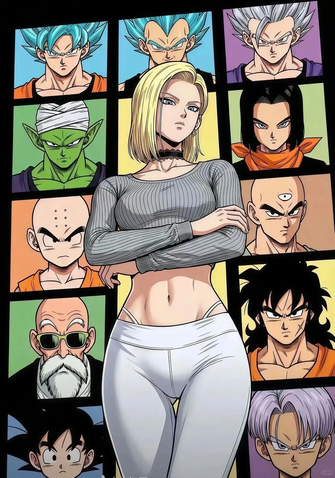 而且18号的脸型和身材堪称建模标杆,随便一搜,各种AI美图。AI刚兴起生成图片时,用18号做原图出好图率极高。实际上鸟山明给18号的设定只有160cm,但大家压根不认可。看看下面的图和视频,像1米六的样子吗?