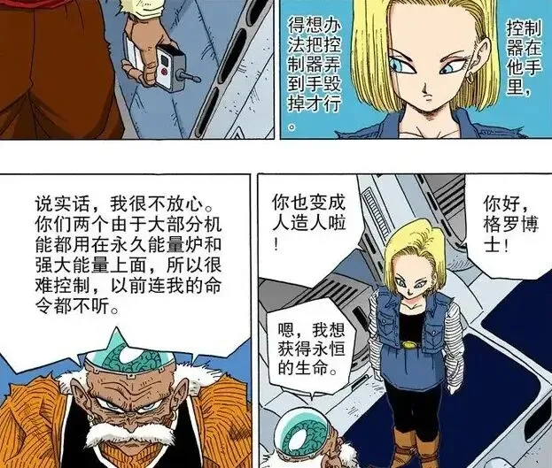 其实17号和18号在被改造后就曾经反抗过格罗博士,结果被回炉调整并增加了毁灭装置。说到底她只是被当成一件“武器”、一个“工具”。格罗博士甚至手握可以随时摧毁她的遥控器。而她只是一个受害者,当从实验室醒来那一刻:格罗博士拿她当杀人工具,赛亚人Z战士们想杀她,沙鲁想吸收掉她,甚至连第一女主角布尔玛都复刻出了自爆装置遥控器想毁了她。漫画里正反派都要干掉的人,真惨。